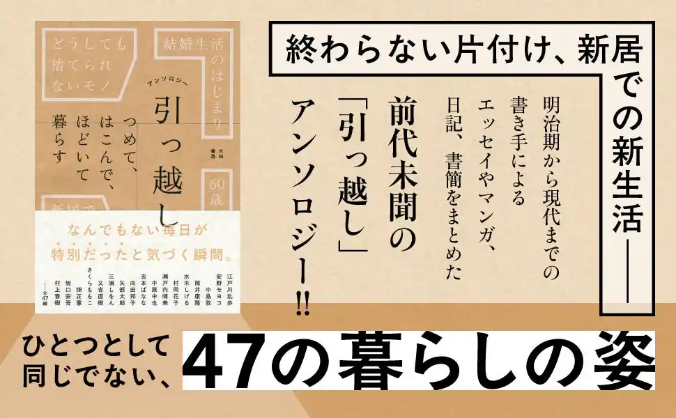 どうしても捨てられないモノや、猫を連れた転居、新居で起こる謎の現象など、明治期から現代までの書き手によるエッセイやマンガ、日記、書簡から、引っ越しにまつわる作品をアンソロジーとしてまとめました。 |