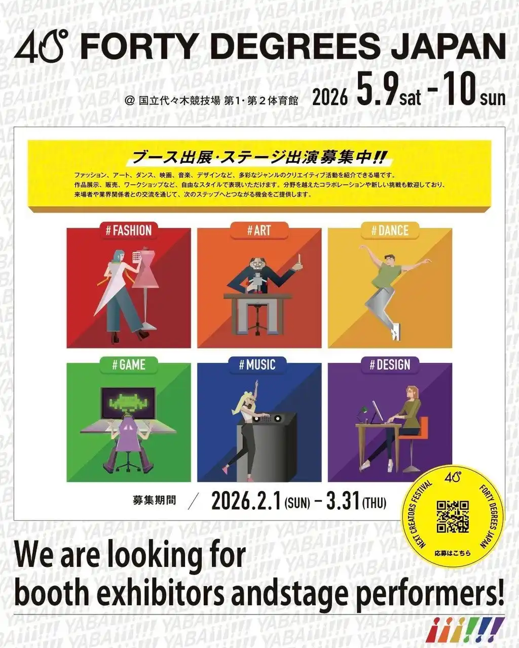 少子化や大学全入時代の到来により、服飾家政分野の専門学校への入学者の減少や大学の専門学校化や専門学校の大学化が進行している中、自らの力で未来を切り開いていこうとする若手クリエーターを応援するため、自身がデザイナー時代の30年前にロンドンで開催された「FORTY DEGREES」にオリジナルのブランドを立ち上げて出展した経験を活かし、各方面の若手クリエーターたちの背中を少しだけでも押してあげられるような“きかっけ”となればと願い、「FORTY DEGREES」を日本で復活させることといたしました。 |