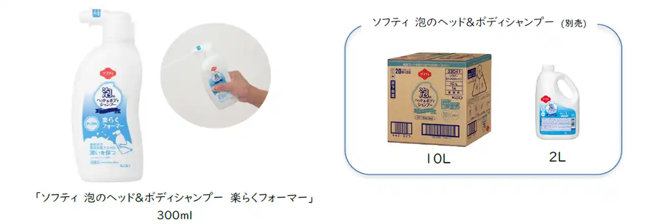 花王株式会社BtoB事業部は、2026年3月16日、介護施設向け全身洗浄料「ソフティ 泡のヘッド&ボディシャンプー 楽らくフォーマー」を発売します。当事業では、家庭の外に広がる社会の現場で、プロが求める清潔・快適なソリューションを提案しています。このたび、介護業界における人手不足や日々のケア・介助による身体的負担の軽減を目的に、利用者から目を離さず、片手で身体を支えながら、もう片方の手で泡を出すことができる製品を提供します。 |