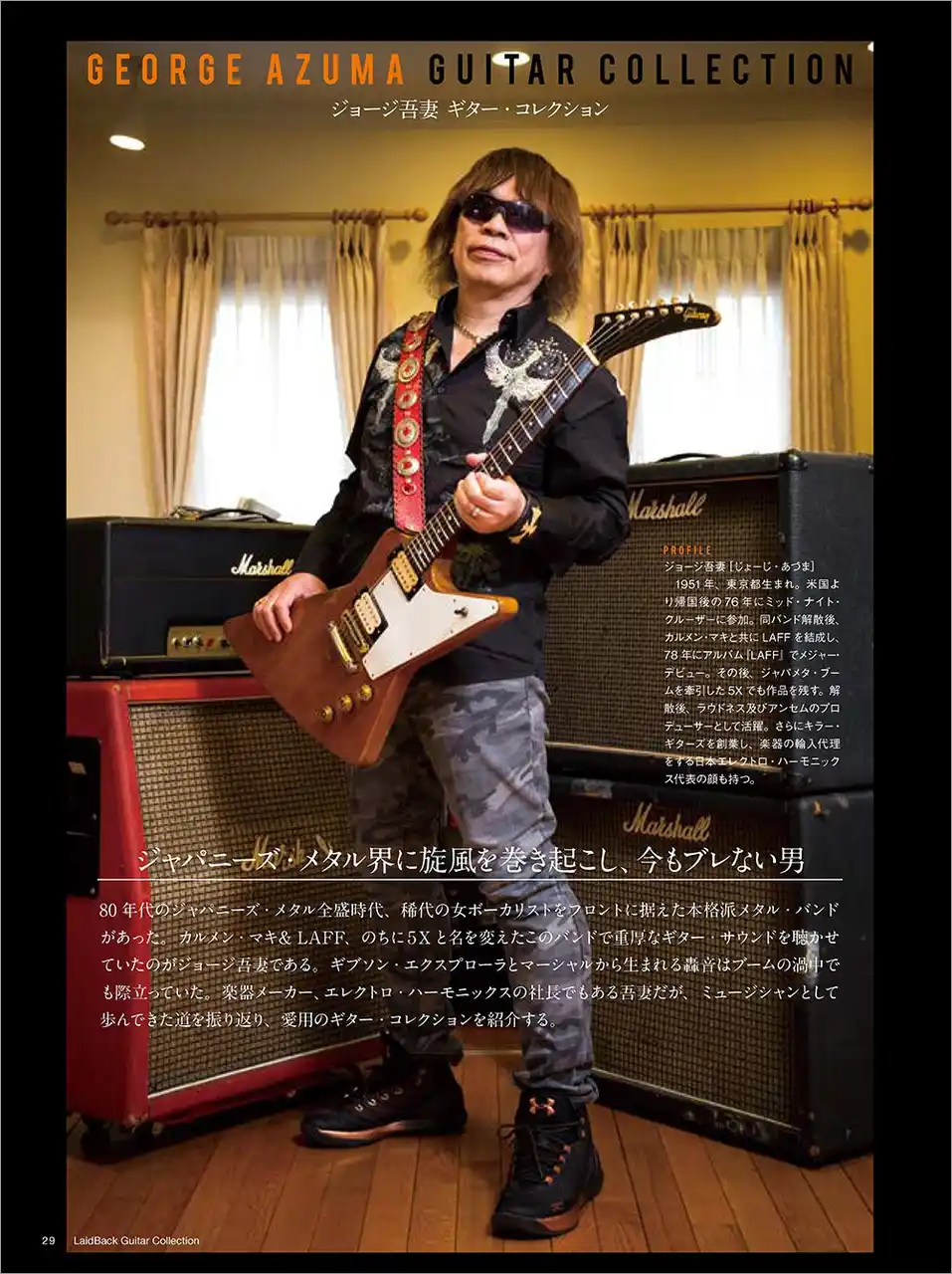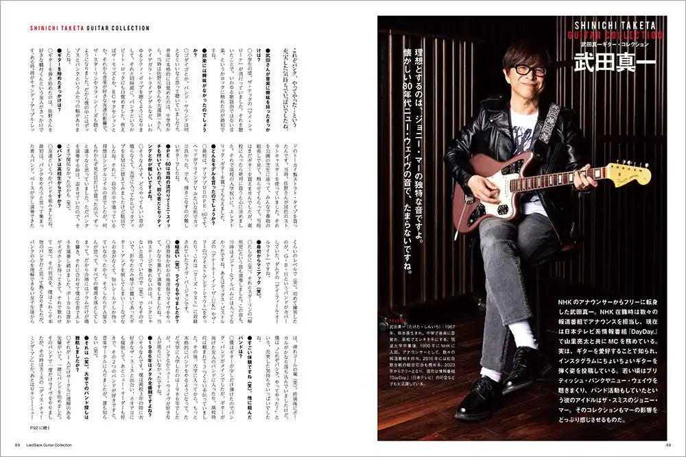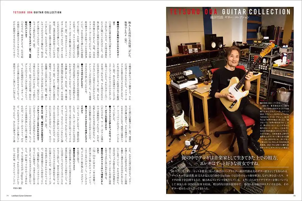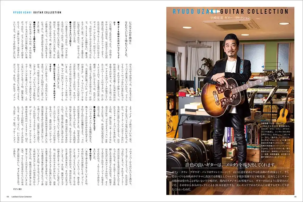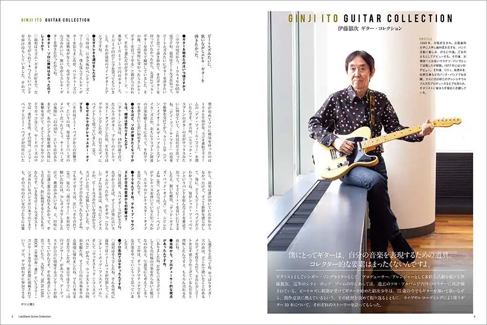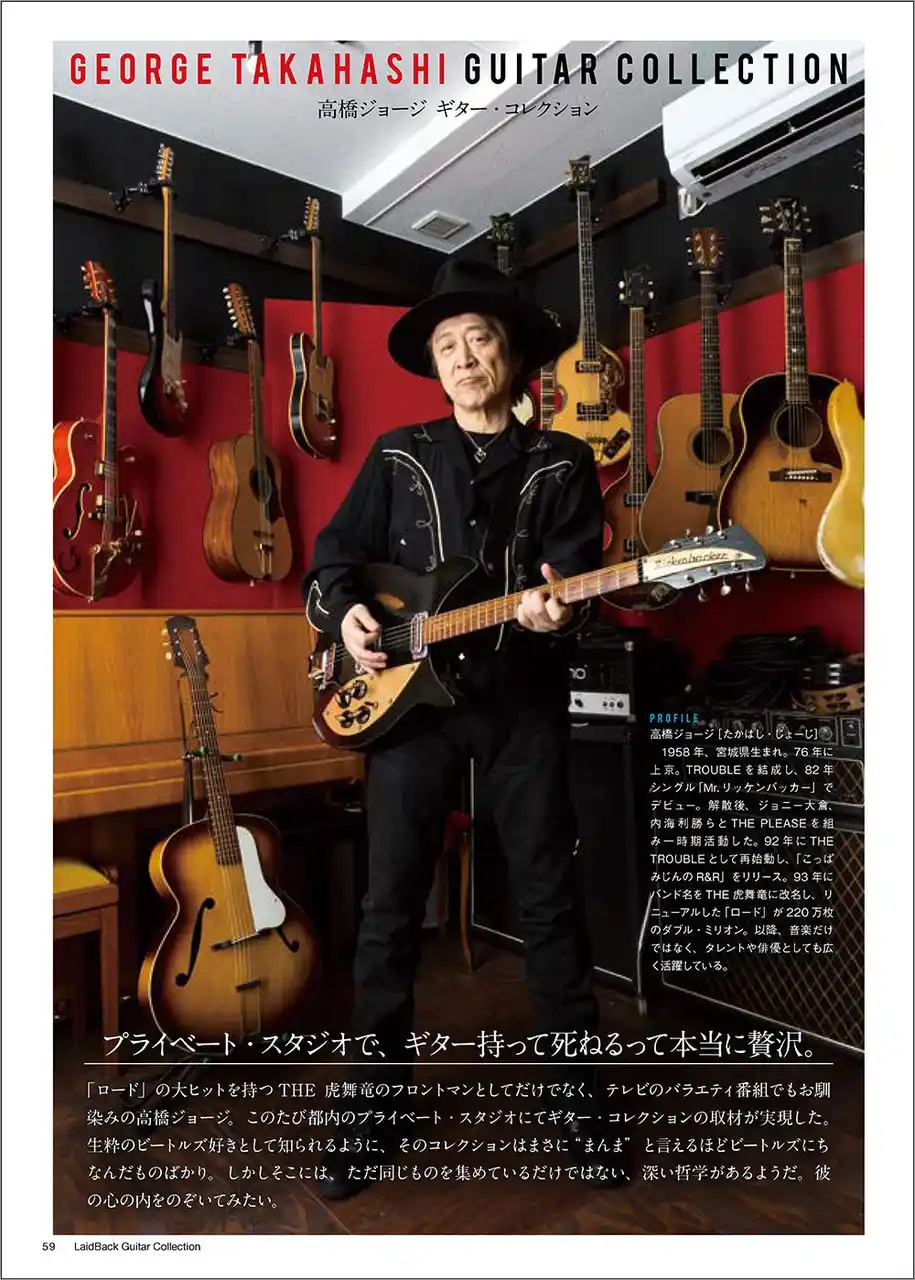 ゆる~くギターを弾きたい大人のためのギター専門誌、ギター・マガジン・レイドバックに掲載している著名人のギター・コレクションを一冊にまとめたムック。登場するのはミュージシャンはもちろんのこと、漫画家、俳優、アナウンサーなど多士済々の11人。貴重なビンテージからエモい珍品までバラエティに富んだコレクションはギター好きの興味を大いにそそり、この人がこんなギターを!と思わず声が出る。連載時にはなかった伊藤銀次のコレクションを新たに追加する。ラインナップは以下の通り。 |
