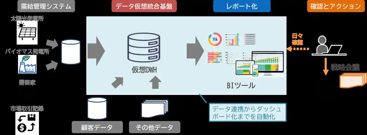 本取り組みにより、30分単位での電力需給実績の可視化と詳細な分析が可能となりました。これにより、電力調達の意思決定および電力販売戦略の立案を、迅速かつ的確に行えるようになりました。また、事業収支予測の精度向上は経営基盤の強化に直結し、電力事業のさらなる拡大に大きく貢献するものと確信しております。 |