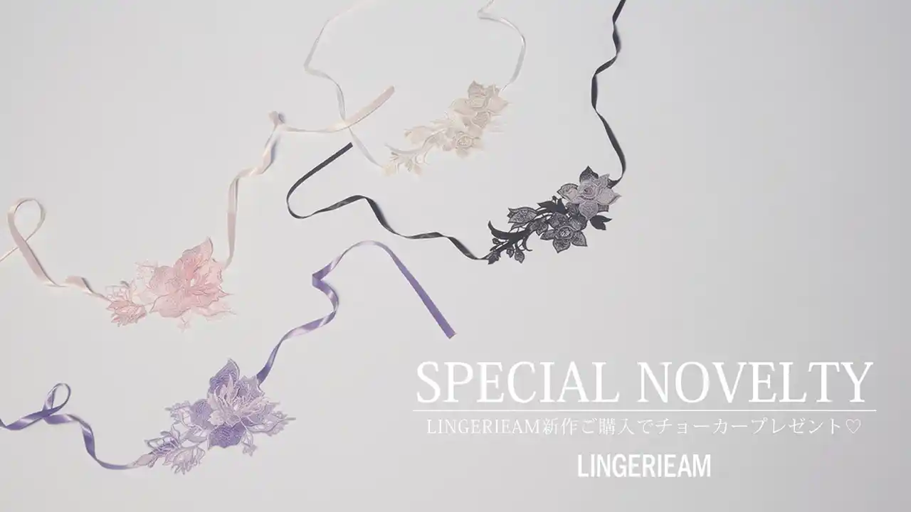 LINGERIEAM NEW COLLECTION発売を記念して、ノベルティキャンペーンを開催いたします。 新作商品をブラ&ボトムのセットでお買い上げ毎に、同シリーズのチョーカーをプレゼント! この機会にぜひご利用ください。 |