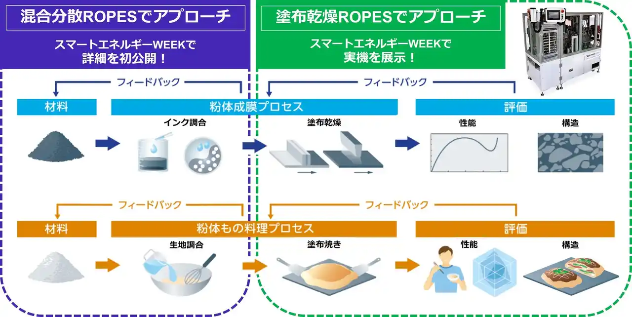 「塗布乾燥ROPES」の開発で得た知見をもとに、粒子の分散状態や凝集の程度が最終的な性能に大きく影響する混合分散プロセスに焦点を当てた「混合分散ROPES」の共同開発を開始します。 |