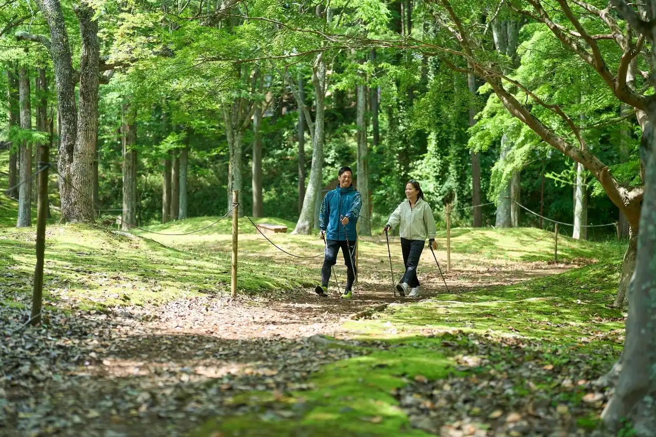 ・新緑の森の中で心と身体をととのえるウェルネス体験「新緑ノルディックウォーキング」 |