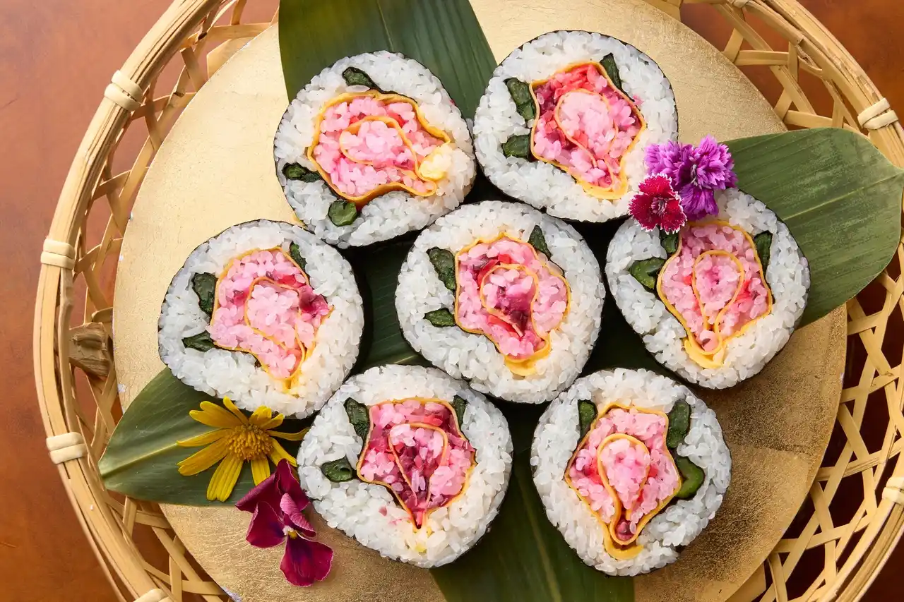 千葉県の郷土料理を作って食べる「太巻き花寿司づくり」を開催いたします。山ごぼうや野沢菜などの具材を芯にして酢飯と海苔で巻き、切り口に華やかな絵柄を描くお寿司です。完成した太巻き花寿司は、その場でランチとしてお召し上がりいただけます。 |