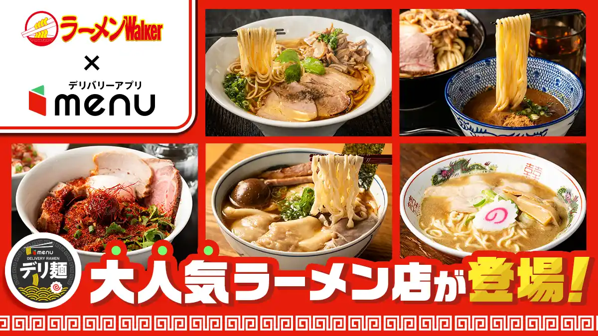 menuは日本最大級のラーメン情報メディア「ラーメンWalker」との共同企画として、デリバリーラーメンの新しい楽しみ方や選択肢を広げるべく、カップ麺やチルド麺に次ぐ新たなラーメン文化「デリ麺」の普及を目指し、「デリ麺プロジェクト」を2025年4月より立ち上げました。 |