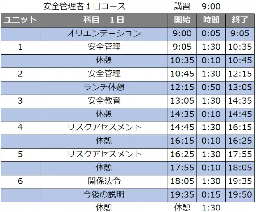 | 【安全管理者選任時研修1日コース】 | |||||||