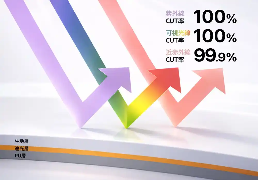 ・UVカット率100% / 遮光率100% / 可視光線カット率100% |