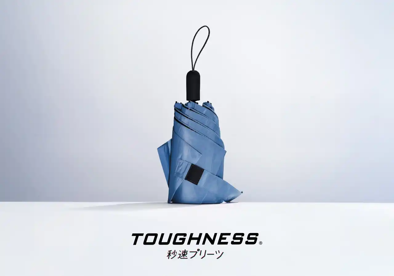 アンベル株式会社(代表取締役:辻野義宏/本社:名古屋市中区)は、こうした都市生活者のリアルな課題に正面から向き合い、全天候型折りたたみ傘「TOUGHNESS 秒速プリーツ(TM)」を2026年3月16日(月)より発売いたします。希望小売価格は6,380円(税込)。公式オンラインストア(https://www.umbrella-store.net/products/toughness-pleats)での販売を開始するとともに、法人向けの卸売販売も行います。 |