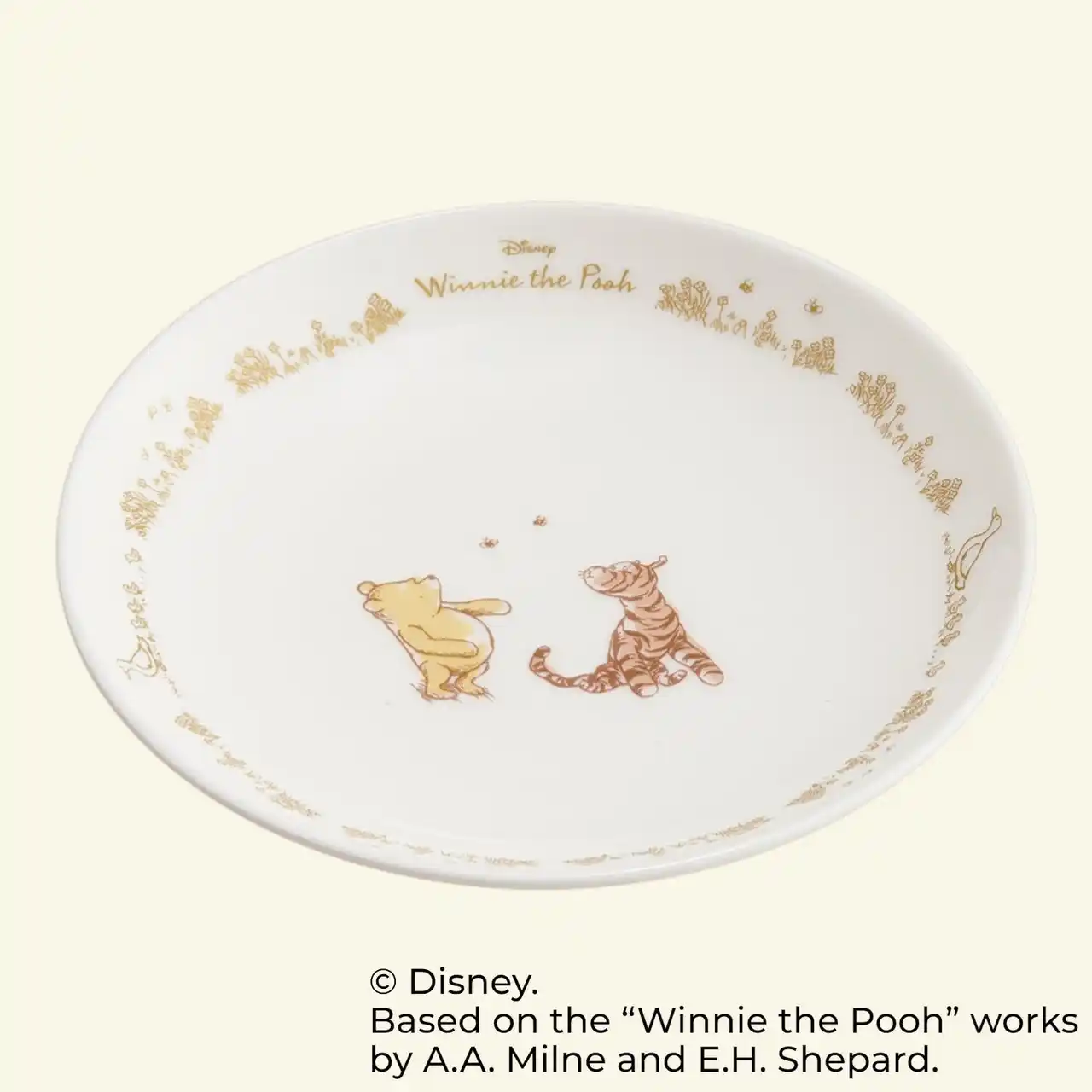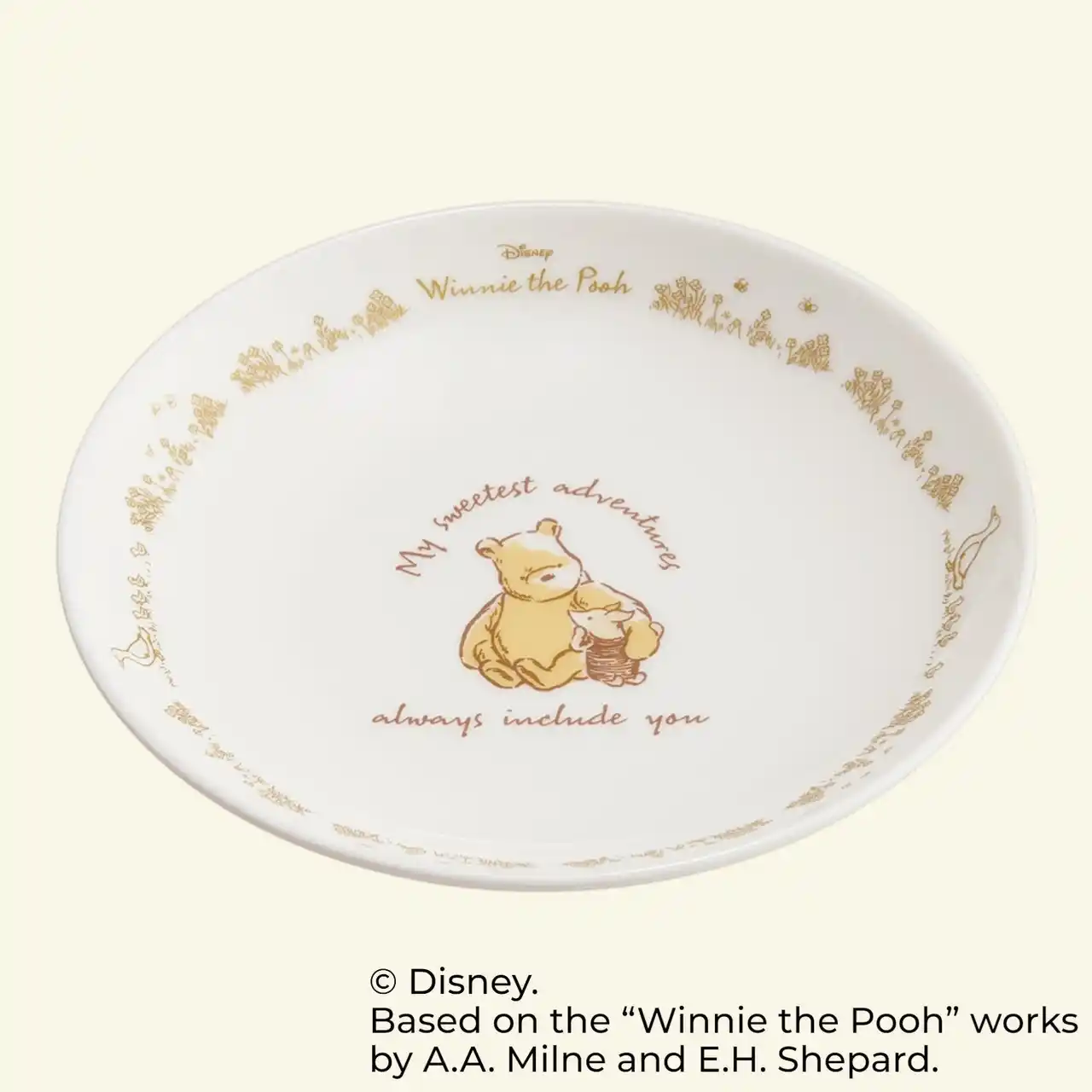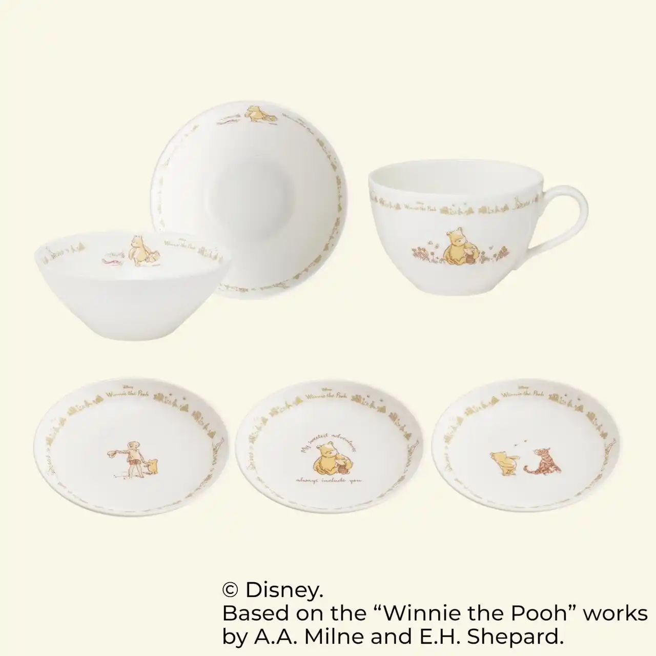 食卓を上品に彩る「クラシックプー」のテーブルウェアシリーズです。水彩画のような繊細なタッチで描かれた「くまのプーさん」や「ピグレット」、「ティガー」などのキャラクターたちが、毎日の食事やティータイムに温もりをもたらします。 |