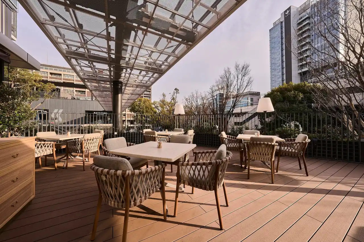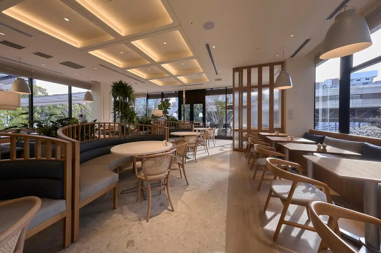 港町ならではの情緒あふれる風景と、都会的な賑わいが心地よく共存する場所に佇むBASEGATE横浜関内店。 「URBAN CLASSIC COMFORT」をデザインコンセプトに、創業者サラベス・レヴィーンが紡いできた“料理の味わいと彩り”をより一層引き立てる空間を目指しました。包み込むような柔らかなフォルムとナチュラルな素材感を基調に、飽きのこない上質な設えへと整えています。 クラシカルで存在感のあるペンダントライト。風に揺らぐグリーンとサラベスブルーをアクセントに、お客様を迎えるラウンドフォルムのバーカウンター、食事を囲み会話が自然と弾むラウンドソファー、ほどよい距離感を保つセミクローズのプライベートシート。 どの席においてもゆったりと寛いでいただけるよう、家具のサイズやフォルムにまで丁寧に配慮しました。 窓から差し込むやわらかな陽光とともに、ゆるやかに流れる時間を感じながら。 朝食からディナーまでのALL DAY、日常にも特別な日にも寄り添う、心地よいひとときをお過ごしいただける場所でありたい――そんな想いを込めています。 |