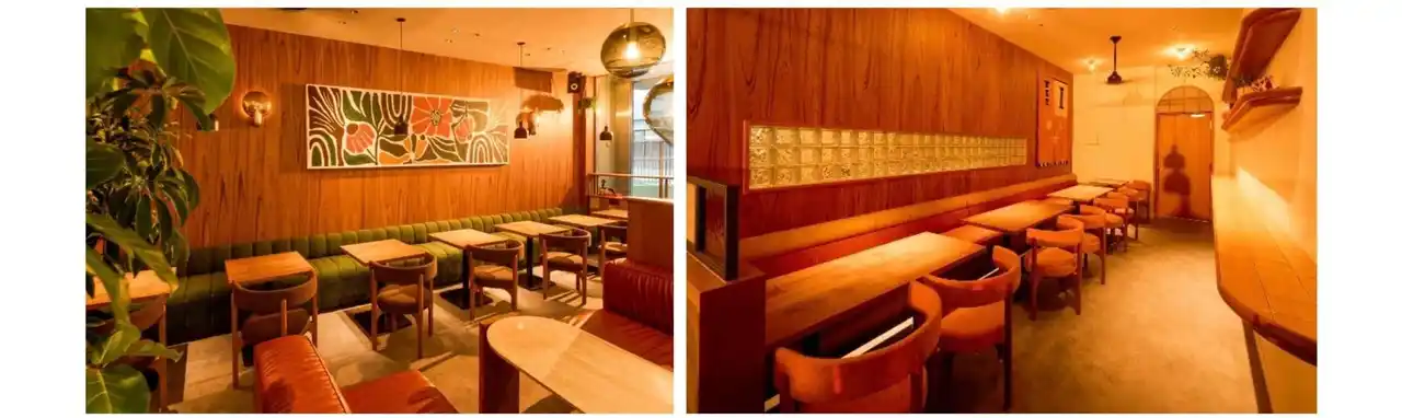 店内はブラウンのウッド材を基調に、緑や茶色、オレンジ、白など、ハワイのサンセットや自然の風景を思わせる温かみのある配色の家具をアクセントとして配置。木のぬくもりがもたらす落ち着きと、夕暮れのようなやさしい色合いが重なり合い、自然と肩の力が抜ける心地よい空間を演出しています。 |