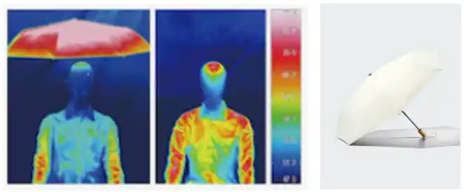※日射1時間照射後のマネキンサーモグラフィ画像(遮熱傘はNATURALを使用) |