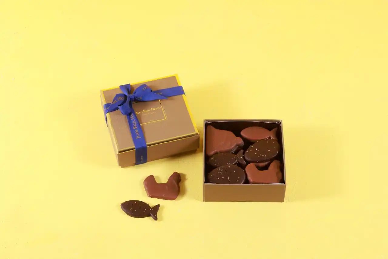 魚や貝など、海の生き物をかたどったビターチョコレート。力強いカカオの風味とウッディな香りが特徴のカメルーン産カカオを使用。※単品販売なし |