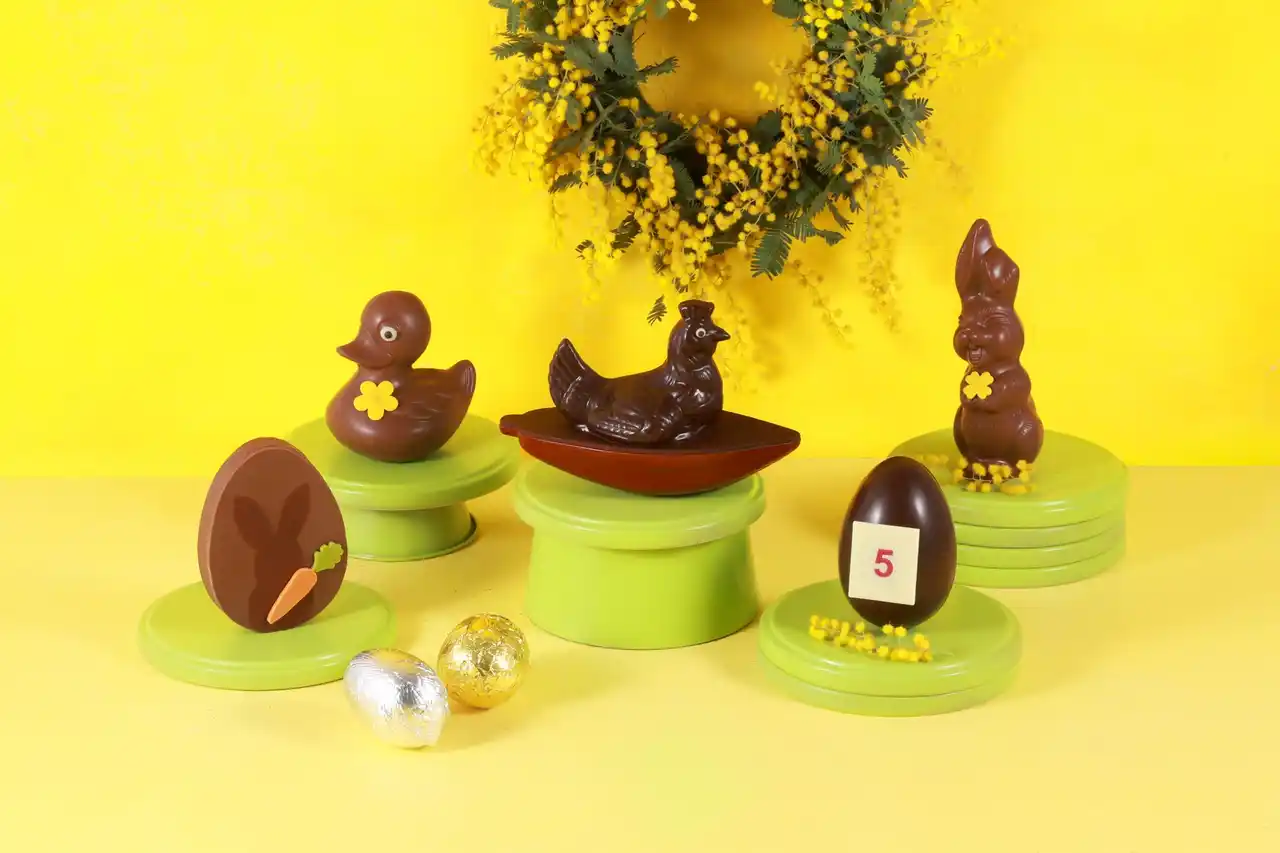 イースターのモチーフ(卵や鐘、動物)をかたどったサブレを、ビターとミルクのチョコレートでコーティング。 |