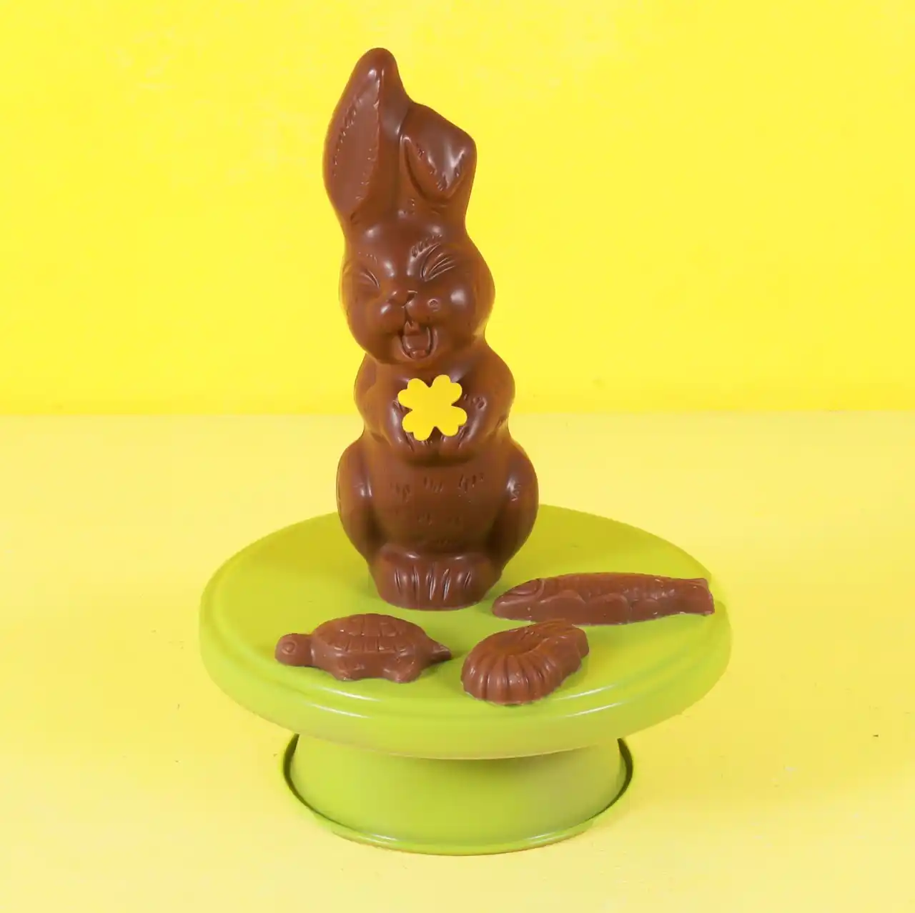 チョコレートでつくられたウサギ。中には、イースターのモチーフである魚や海の生き物をかたどった「フリチュール」が3個入っています。 |