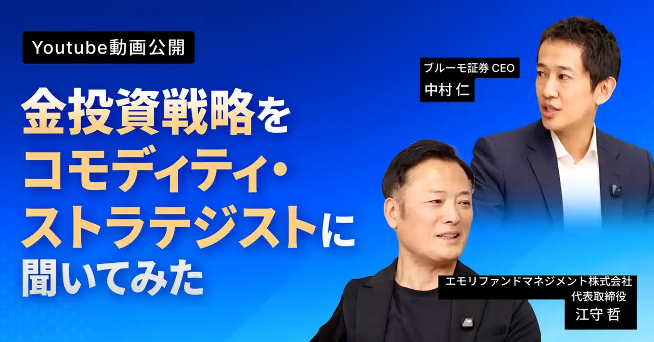 世界基準の資産運用サービスを展開するブルーモ証券株式会社(本社:東京都中央区、代表取締役CEO:中村仁、以下「ブルーモ証券」)は、公式YouTubeチャンネルにて日本初のコモディティ・ストラテジストとして知られる江守哲 氏との特別対談を公開しました。 |