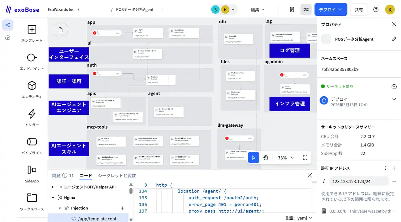exaBase Studioは、様々なファイルやデータなどを集約し、ユーザーは容易にAIエージェントやAIアプリケーションの制作が可能なAIエージェント開発・運用プラットフォームです。業務ですぐに使い始めることができるアプリケーションのテンプレートを提供しており、社内データと接続し、ユーザーと対話しながら自動化したい業務をAIエージェントのタスクに落とし込んでいくことができます。 詳細はこちらをご覧ください。https://exawizards.com/exabase/studio/blog/2025042401/ |