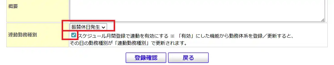 シフト機能で連携設定した勤務体系を登録 |