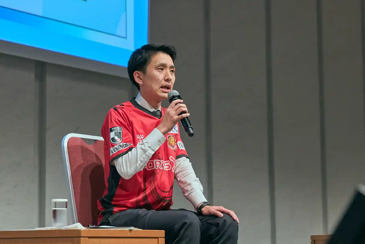 「今年、人権啓発マッチを開催し企業からもご一緒したいとの声をいただきました。サッカークラブというのは、選手・スタッフ・サポーター・スポンサー企業・行政・アカデミーなど、年齢もバックグラウンドも多種多様なステークホルダーに支えられて運営が成り立っています。だからこそ、地域に根差したハブ役にならなければなりません。 |