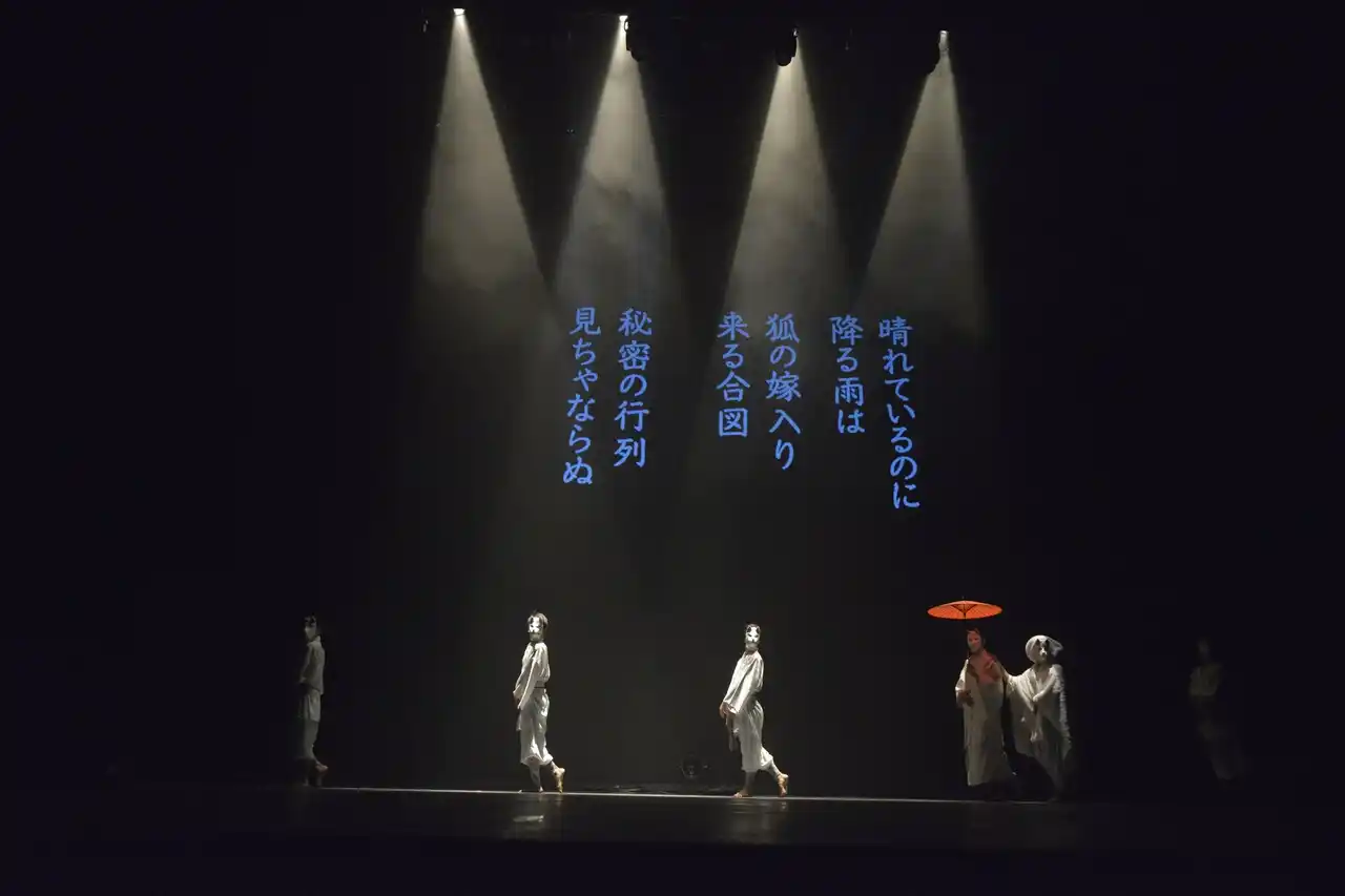 | 「狐の嫁入り」という日本の幻想的な情景から着想を得て描かれるのは、兄弟の絆と運命をめぐる物語。物語は、ダンスとによって紡がれ、障子や和傘といった日本的モチーフが、舞台上に詩的な空間を立ち上げていきます。そこに息づくのは、伝統的な美意識と、現代的な感性が融合した唯一無二の舞台世界。今回は、作品の根幹はそのままに、新たな演出手法と構成によって再構築。 | |||||||||