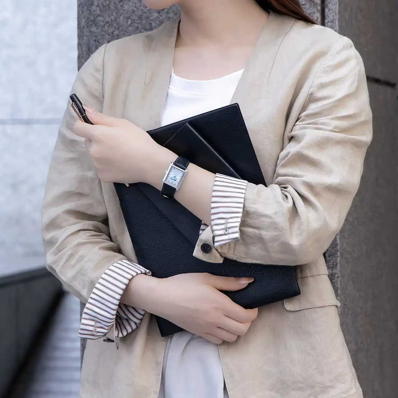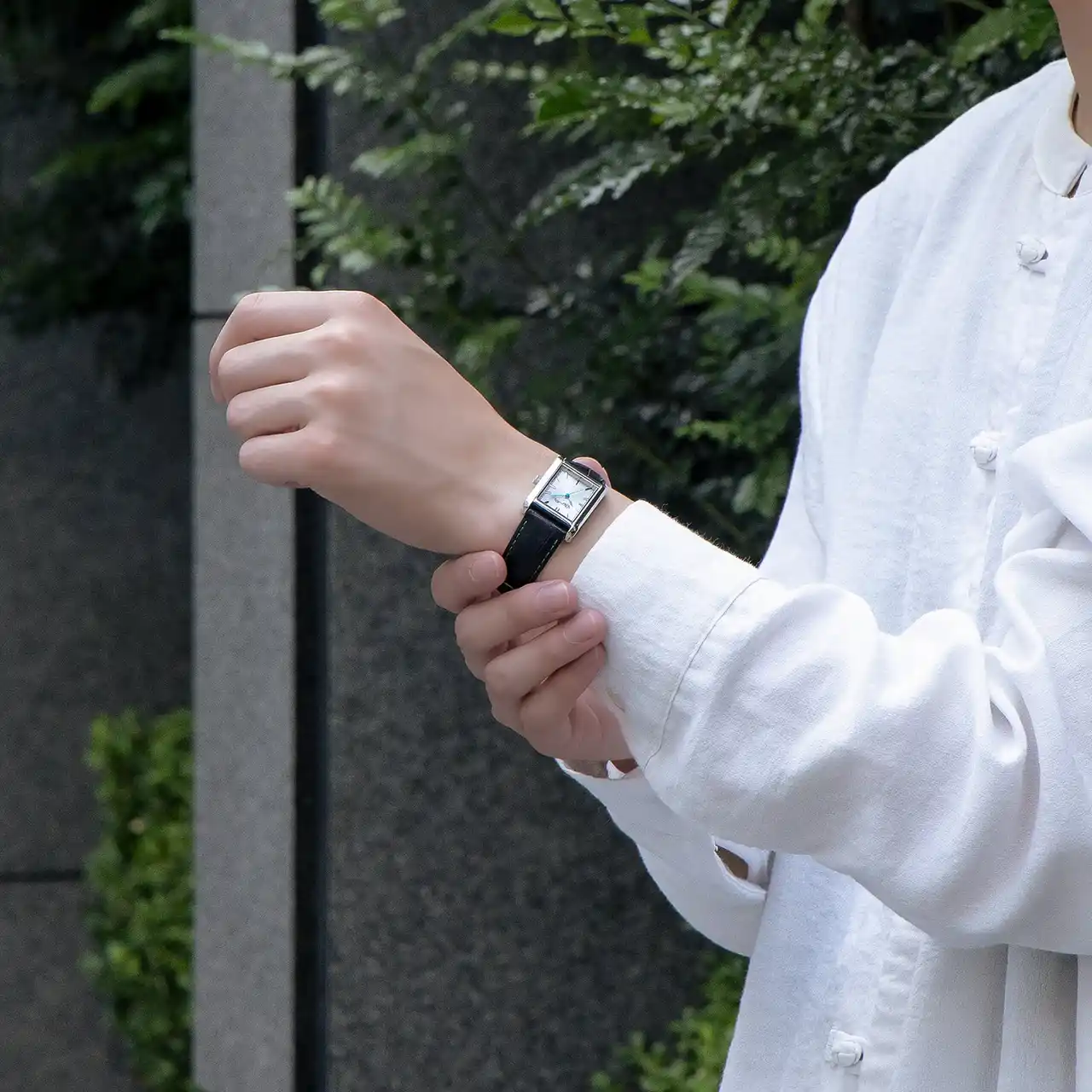 時計本体は洗練されたシンプルさを追求し、日常の装いにも自然に馴染むデザインに仕上げました。 |