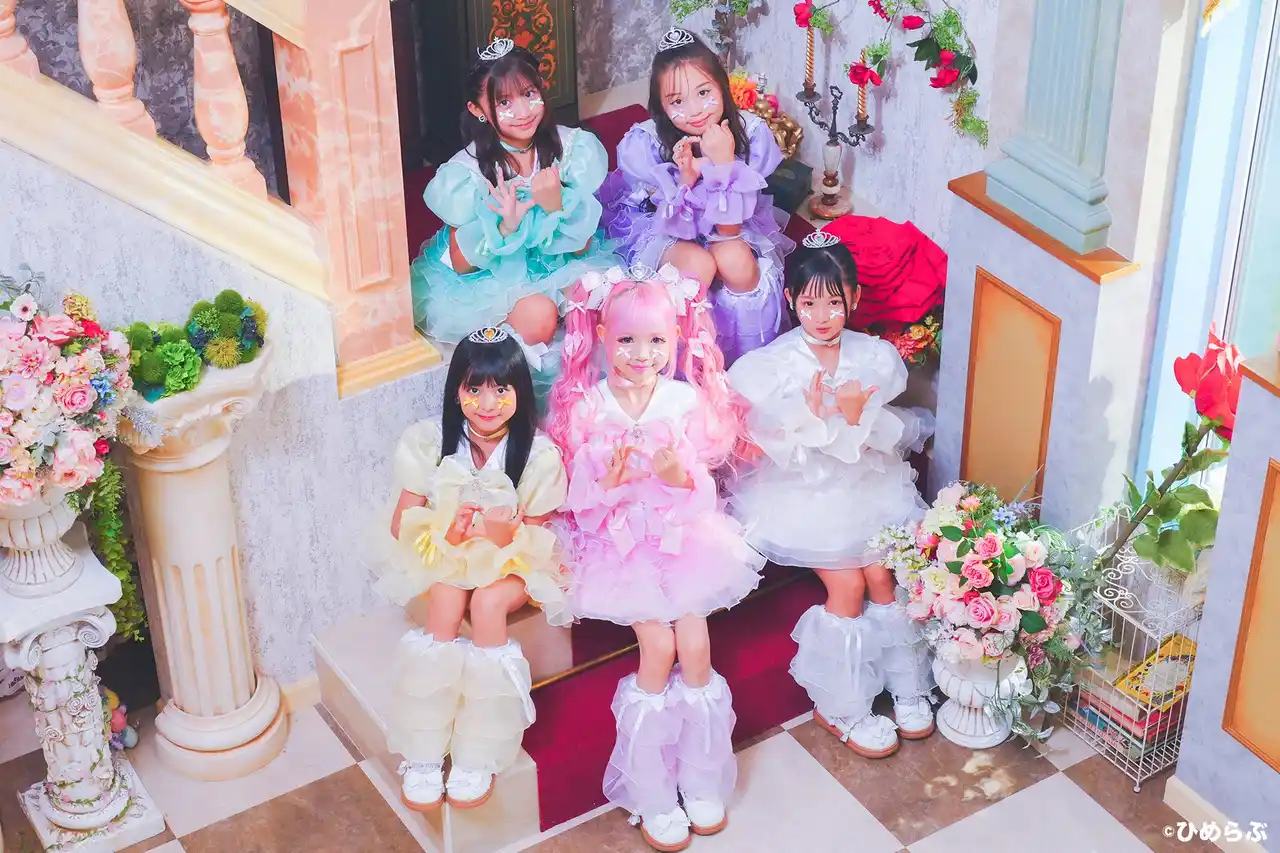 「ひめらぶ」は、小学生メンバー5名によるプリンセスアイドルグループです。 "小学生姫ギャル"のりりぴをセンターに迎え、同世代の憧れを象徴する存在=プリンセスアイドルを目指して結成されました。 2025年8月に全国から500名以上がエントリーしたオーディションを経て4名が選ばれました。 しなこや竹下パラダイスの作品で知られるNOVECHIKAと、二度のレコード大賞受賞歴を持つTETTAが制作したデビュー曲『100パーセントだいちゅっき』はMV再生数50万回、TikTok動画再生数1,700万回を突破し大きな注目を集めています。 |