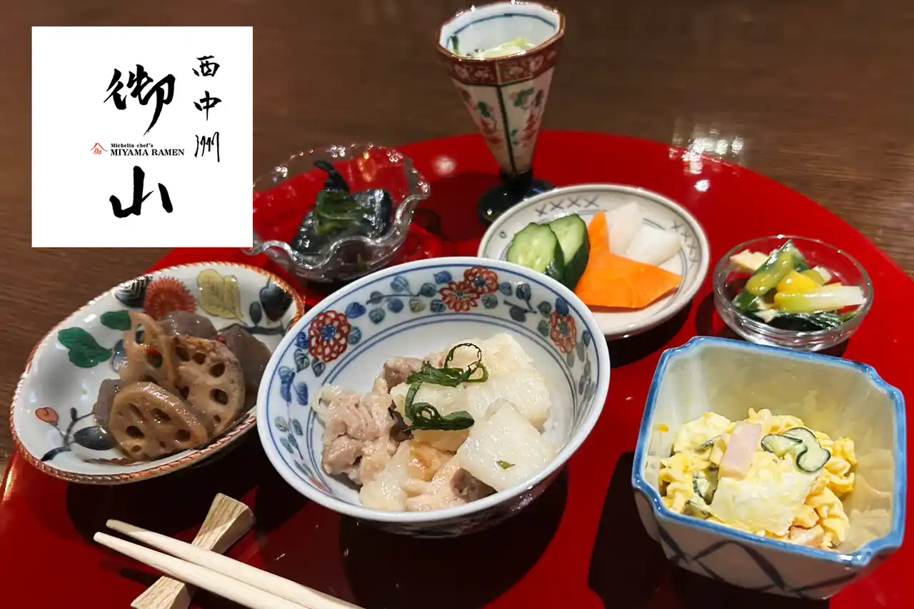福岡県福岡市中央区西中洲にて、超濃厚牡蠣白湯ラーメン専門店を展開する「西中洲 御山(みやま) 」 は、 2026年3月より新たに「手作り おばんざい」 の提供を開始いたしました。当店は11:00から22:00まで、アイドルタイムなしの通し営業。ランチタイムの混雑を避けた遅めの昼食や、 夕方からの早めのディナーなど、お客様のライフスタイルに合わせた自由な時間に寄り添える隠れ家的飲食店です。 |