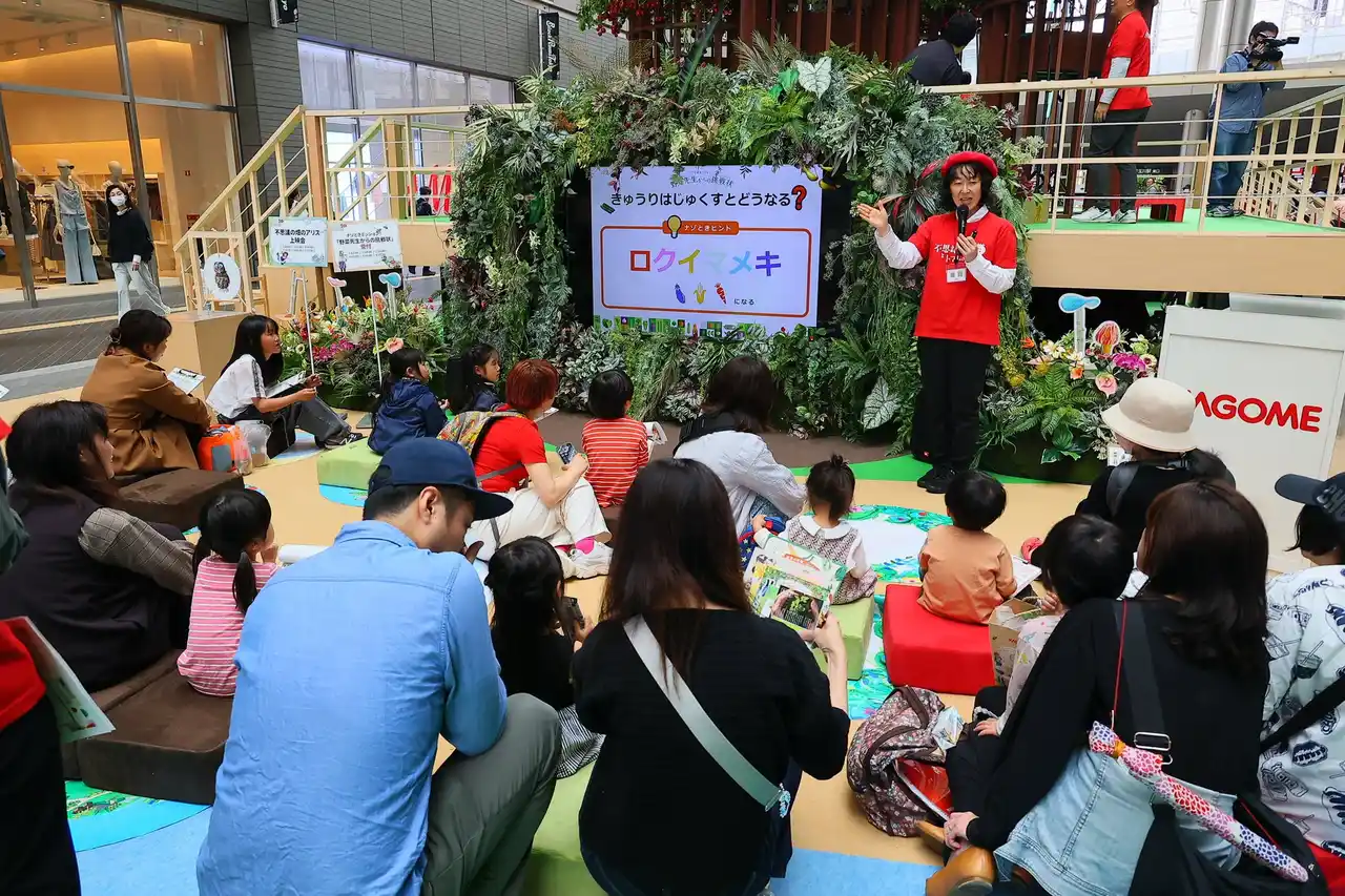 会場内のモニター前にて、カゴメ社員による野菜を楽しく学べるワークショップ「野菜先生からの挑戦状」や、「不思議の畑のアリス」の読み聞かせ動画の放映を実施いたします。 |