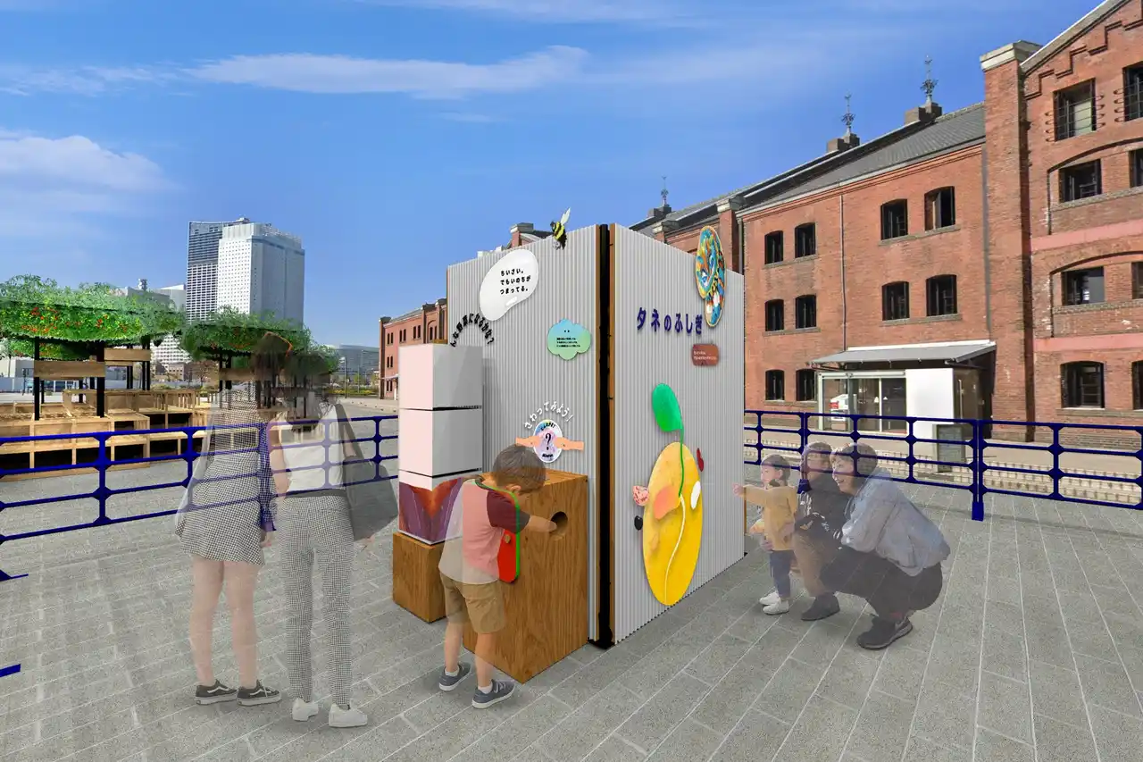 期間中に同じく横浜赤レンガ倉庫イベント広場で開催中の、横浜港を望む広大なお花畑の風景を楽しむイベント『FLOWER GARDEN 2026』と「不思議の畑とトマトの樹」が初コラボレーション! |