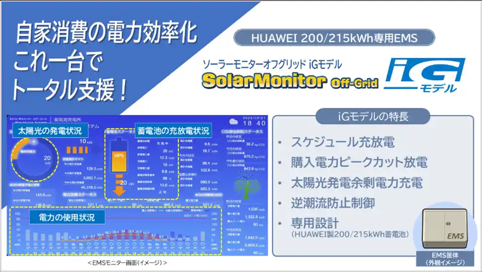 イグアス、HUAWEI産業用蓄電池200/215kWh専用 自家消費向け高機能EMS「SolarMonitor Off-Grid [iGモデル]」 新発売