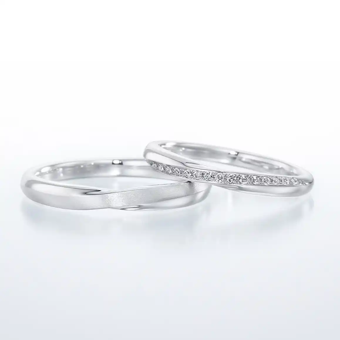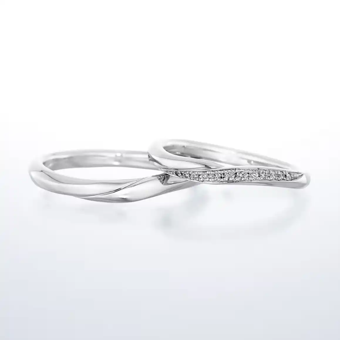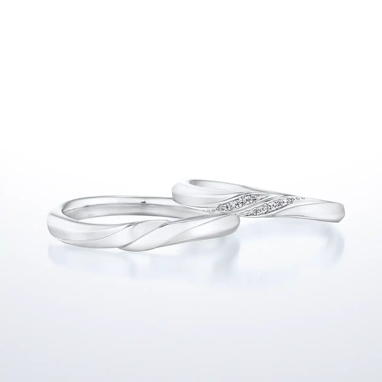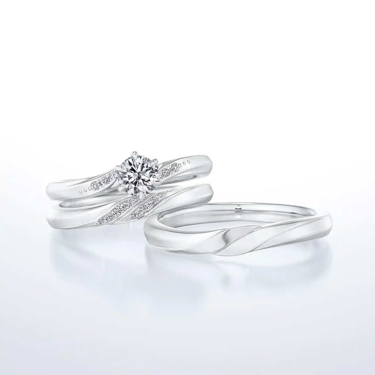 婚約指輪(エンゲージリング)と結婚指輪(マリッジリング)を重ねてつける「セットリング」も業界の先駆けとなっています。なめらかな着用感、サイドからみた美しさも細やかな手仕事がなすさらなる特徴です。 |