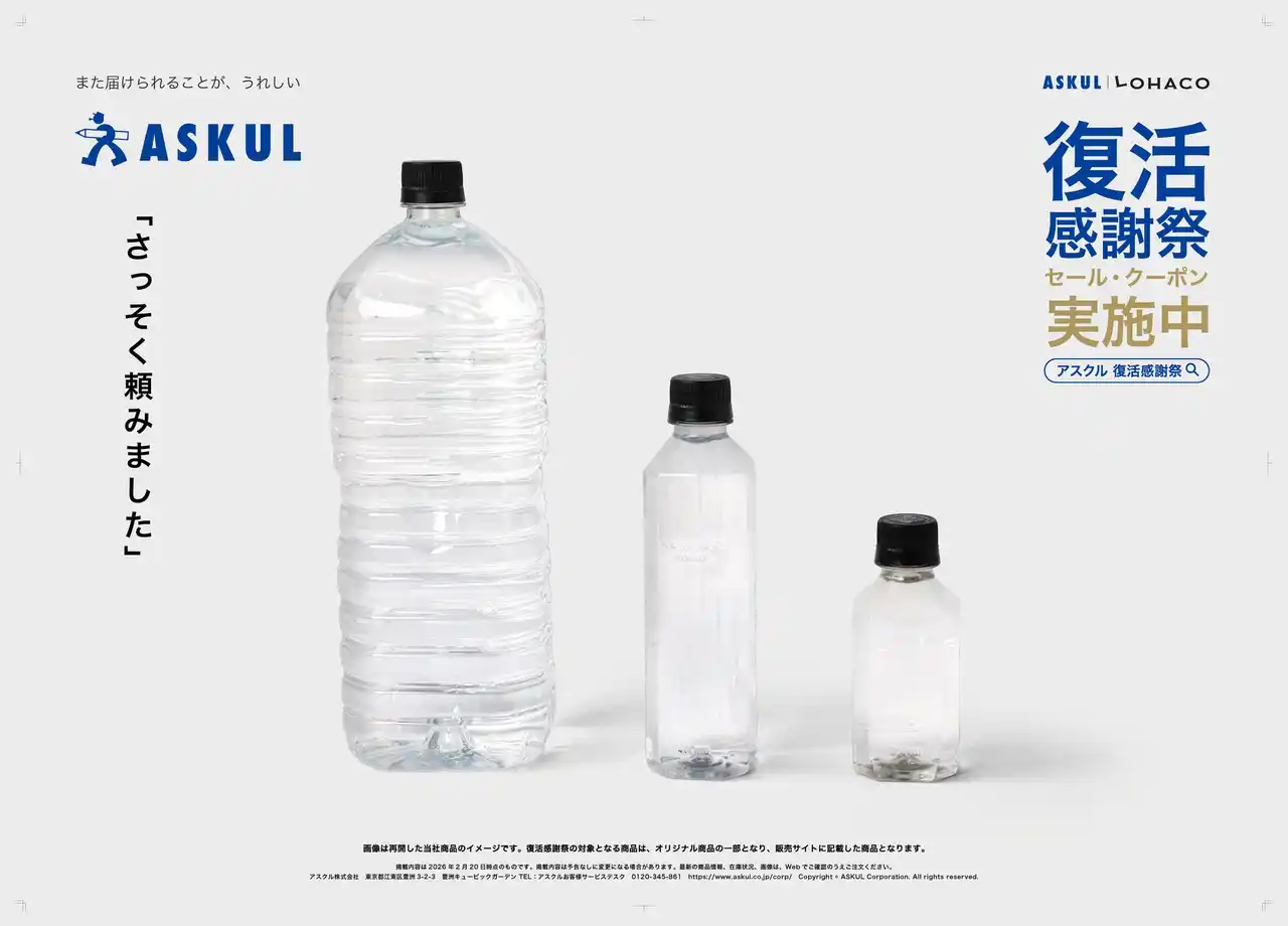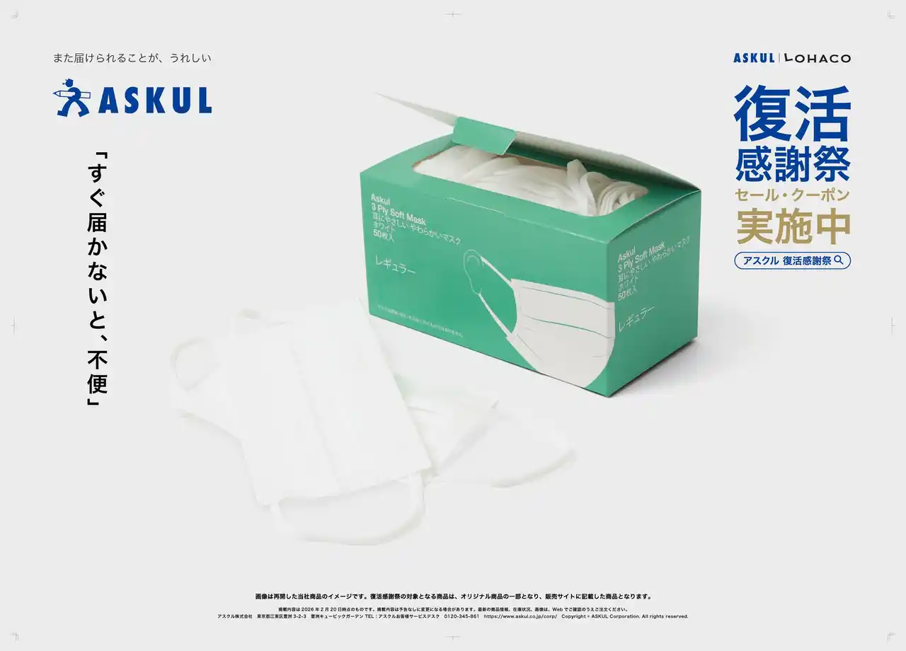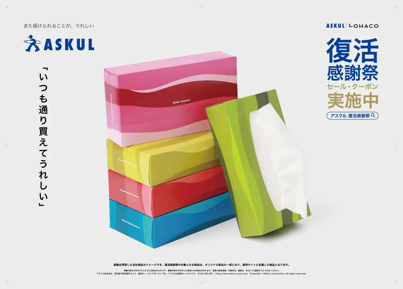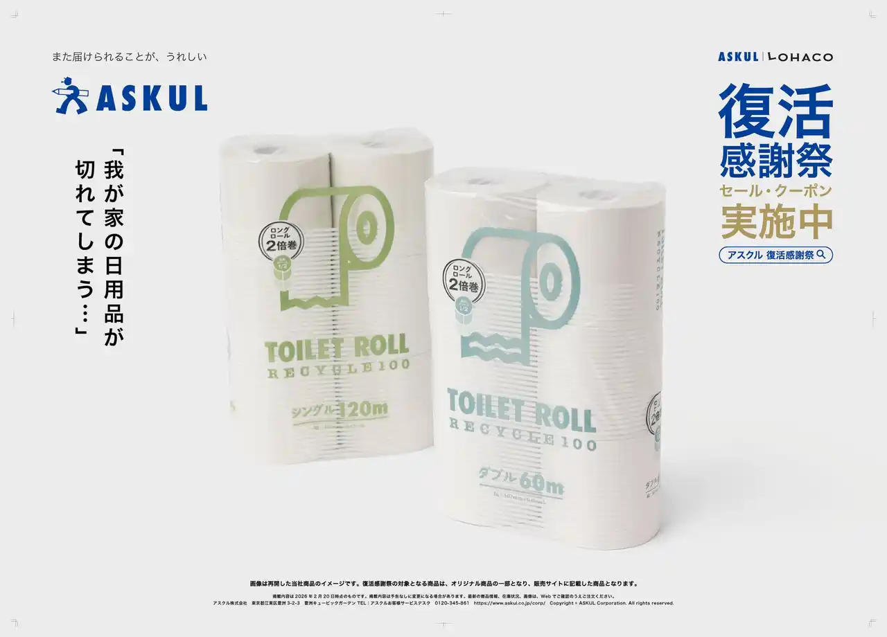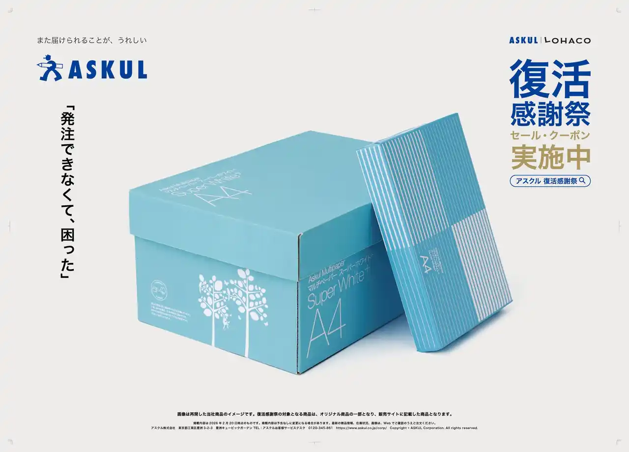 本広告は、日頃、法人向け通販サービス「ASKUL」「ソロエルアリーナ」および個人向け通販サービス「LOHACO」をご利用いただいているお客様へ、システム障害によりご不便をおかけしたことへのお詫びと、ご愛顧への感謝の気持ちを込めて展開するものです。多くのお客様に支えていただきながら事業を続けてきた企業として、その想いを交通広告や新聞広告、Web動画広告、SNS広告を通じて発信します。 |