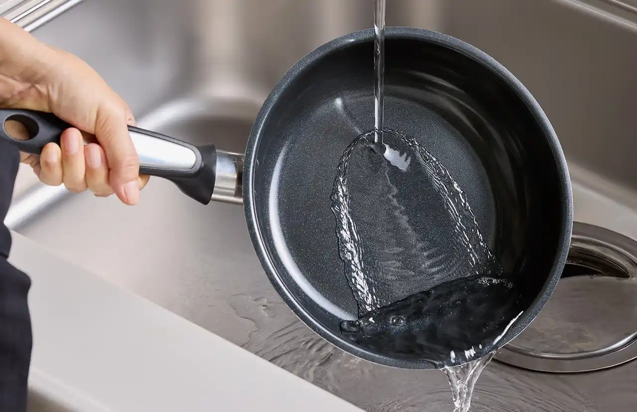 滑らかなコーティング面は汚れが落ちやすく、洗い物もスムーズにはかどります。 |