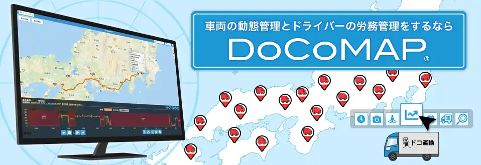 株式会社ドコマップジャパンは、2016年12月にNTTドコモ社の呼びかけで、運送業に特化するIoTを活かした社会貢献可能な技術の提唱・開発が出来る企業として2017年8月に設立。昨今増え続ける物流需要、少子高齢化や厳しくなる労働時間管理等により運送形態の改革が必要な産業インフラ『物流』の危険的状況をIoT技術でなんとかするという課題に対し、GPSによる車両位置情報管理システム「DoCoMAP」をIT機器の導入が進んでいない運送業者にも低価格で販売・供給し、業界の「働き方改革」に活かせるようにサポートしています。 |