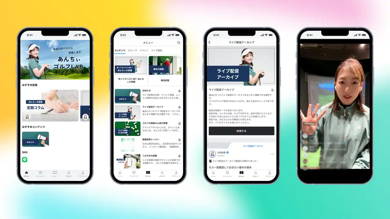 「あんちぃゴルフLAB」は、女性のプロゴルファーによるレッスンを受けられるだけでなく、参加者同士が練習成果やラウンド結果を共有しながら交流できるコミュニティです。ライブ配信や動画添削などの機能を通じて、オンラインでも継続的に学び、成長できる環境を提供しています。 |
