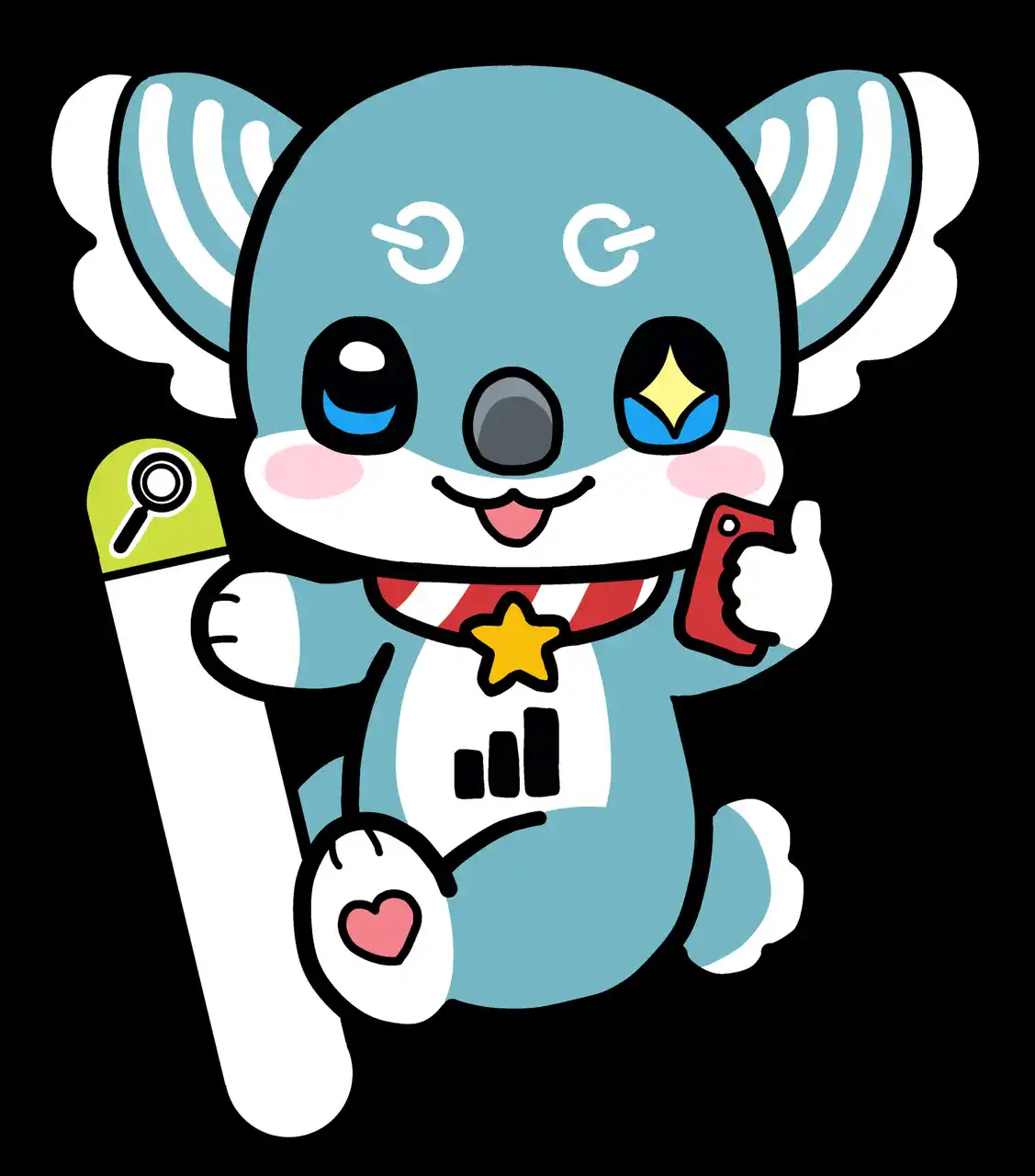 | 「検索上位にしがみつく」というサービスの強みを、木にしがみつくコアラで表現。耳はWiFiマーク、眉は電源、お腹には業績が黒字で伸び続けるグラフをあしらいました。お客様を“コア”なファンに育て、検索順位を“ライズ”させるという願いを込めています。 | |||