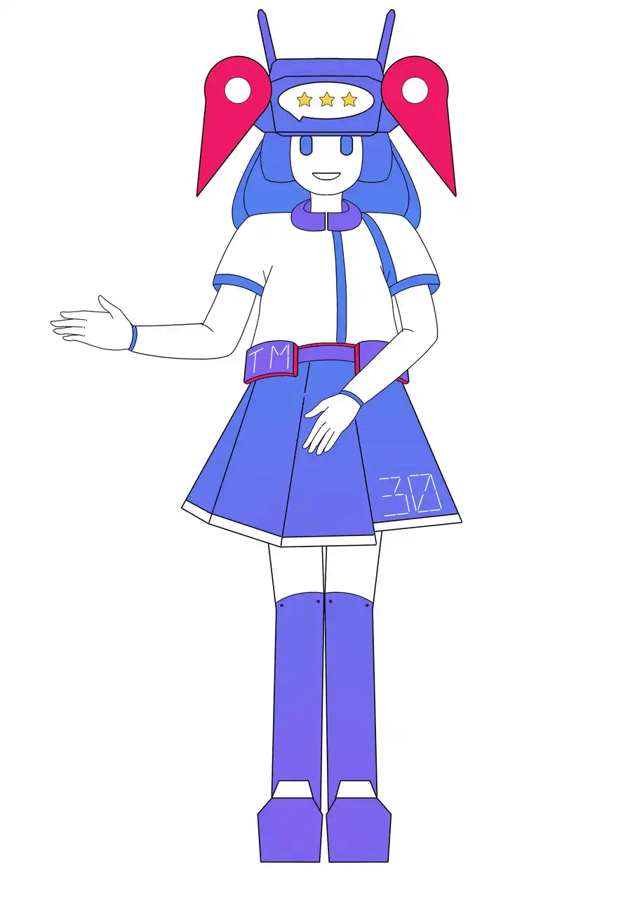 | 地図検索の象徴である“ピンアイコン”をツインテールに見立て、ひと目でMEOに関連すると分かるシルエットに。頭部のヘッドギアにはレビュー評価を示す「星」を表示し、“AIがレビューを解析し、店舗を支えるロボット”という役割を表現しました。 | |||