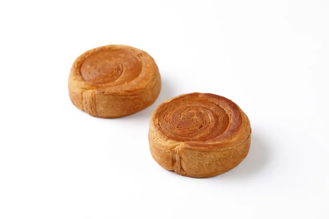 フライパンにバターと砂糖を溶かし、両面を軽く焼くと、外はカリッと、中はしっとりとしたお手軽クイニーアマンに大変身。香ばしさと甘さが広がり、贅沢な味わいです。 |