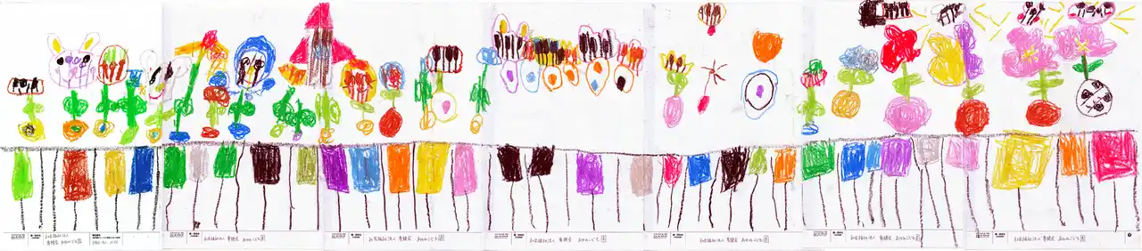 | 子どもたちそれぞれが思う色々な色の鍵盤から沢山の種が形を変えて生き生きと育つ姿が描かれています。もし、この絵が描かれたピアノが園に届いた際には、子どもたちが音に触れ、表現する楽しさを感じられるよう大切に使用していきたいです。 | |||