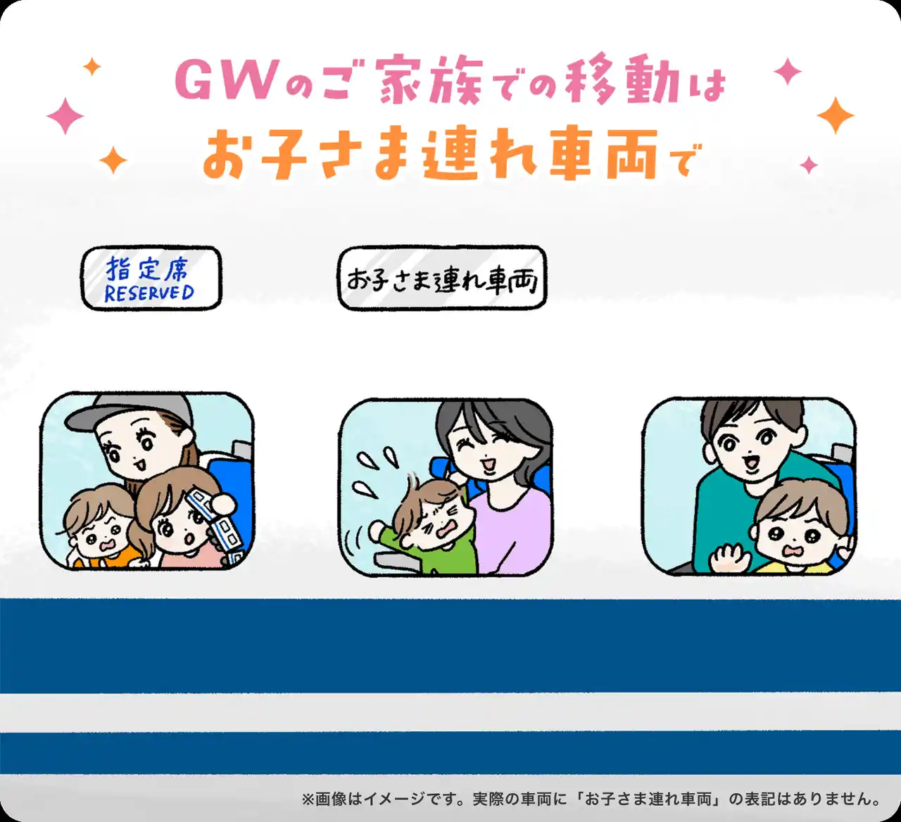 東海道新幹線「お子さま連れ車両」をより多くのお客様にご利用いただけるよう、今年のGWは前年より24本増やし70本運行します! |