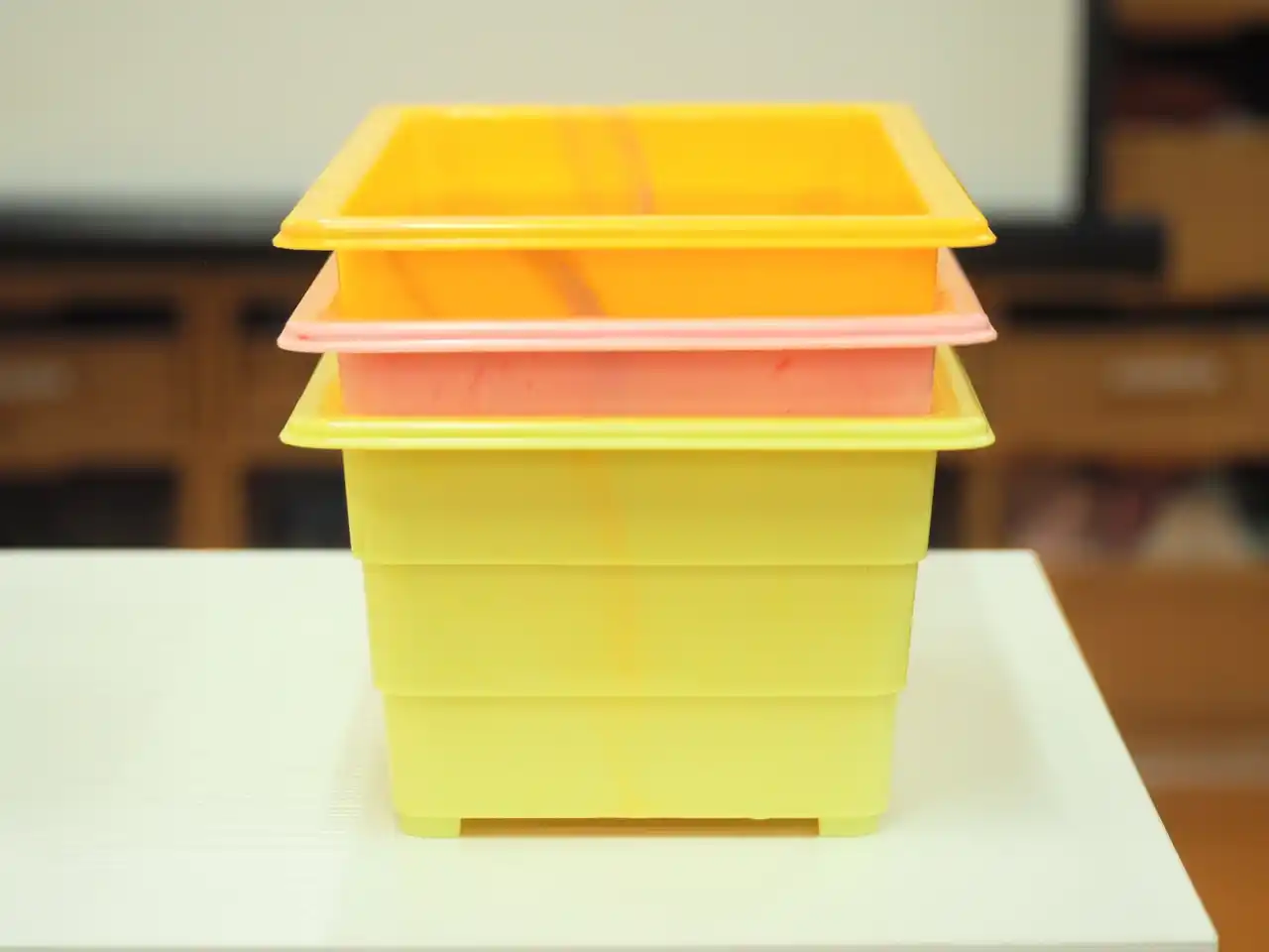 環境学習の中で、「このプランターはだれが作ったでしょう?」という問いかけに対し、子どもたちからは「工場ー!」という元気な声が上がりました。しかし、「みんなだよー!」という答えが伝えられると、子どもたちは驚きの表情となりました。自分たちが分別・回収したペットボトルキャップが、再び価値あるものへと生まれ変わり、その一部に自分たちが関わっていることを実感する瞬間となりました。 |