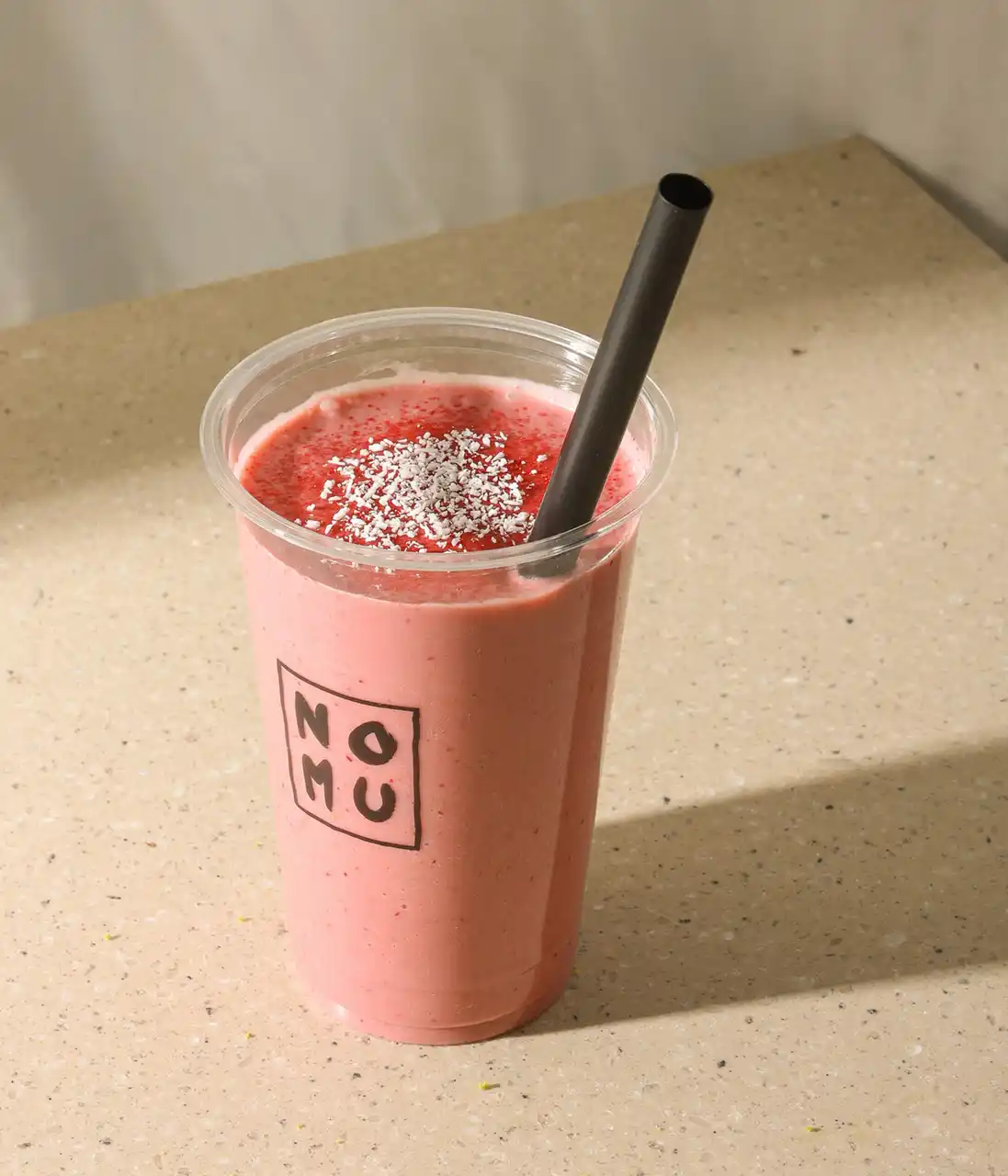 甘酸っぱいベリー(ストロベリー・ラズベリー・クランベリー)にアプリコットの優しい果実味を重ね、ザクロジュースで爽やかに仕上げた春のスムージー。果実が織りなす鮮やかなピンク色も特徴です。ギリシャヨーグルトのコクに、オーツミルク&ココナッツミルクのまろやかさを合わせ、アガベシロップの上品な甘さでバランスよく整えました。抗酸化作用が強いベリーやザクロがたっぷりで、美容や健康を気遣う方にもおすすめです。 |
