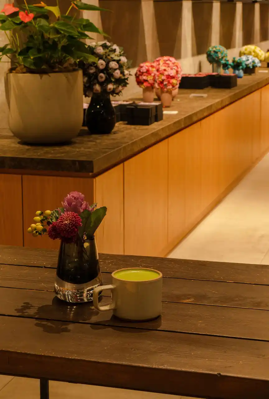 抹茶と桜、ストロベリーを組合わせた「スプリングトライフル」をはじめ、ザクロやベリー、ギリシャヨーグルトなど栄養価の高い素材をふんだんに使用した「ベリー&ザクロスムージー」や、抹茶の豊かな味わいと甘酸っぱいストロベリーピューレを組合わせた「抹茶ストロベリークリームラテ」など、春らしく華やかな限定メニューをぜひこの機会にお楽しみください。店内には、色鮮やかな春の花々もディスプレイされています。 |