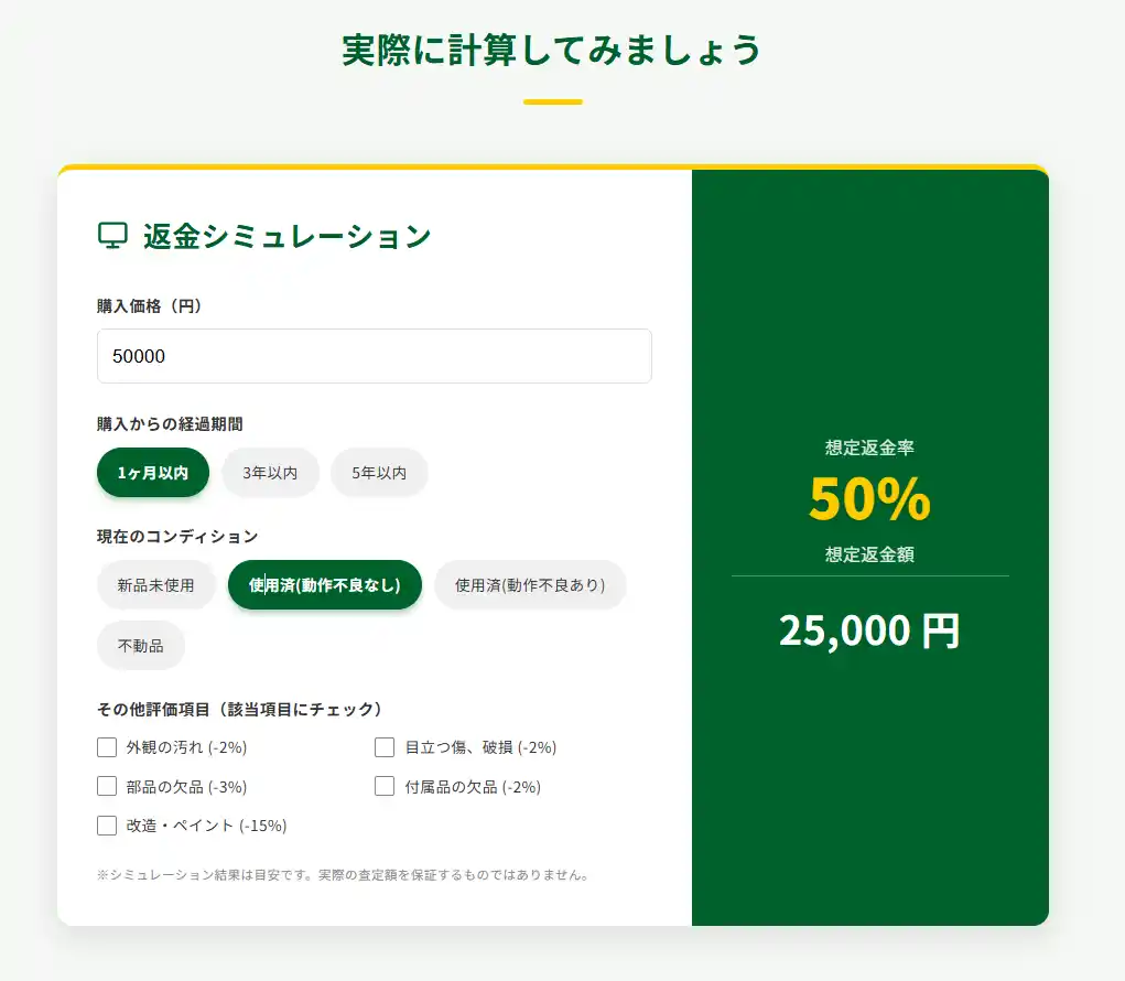 返品金額シミュレーションページ(イメージ) |