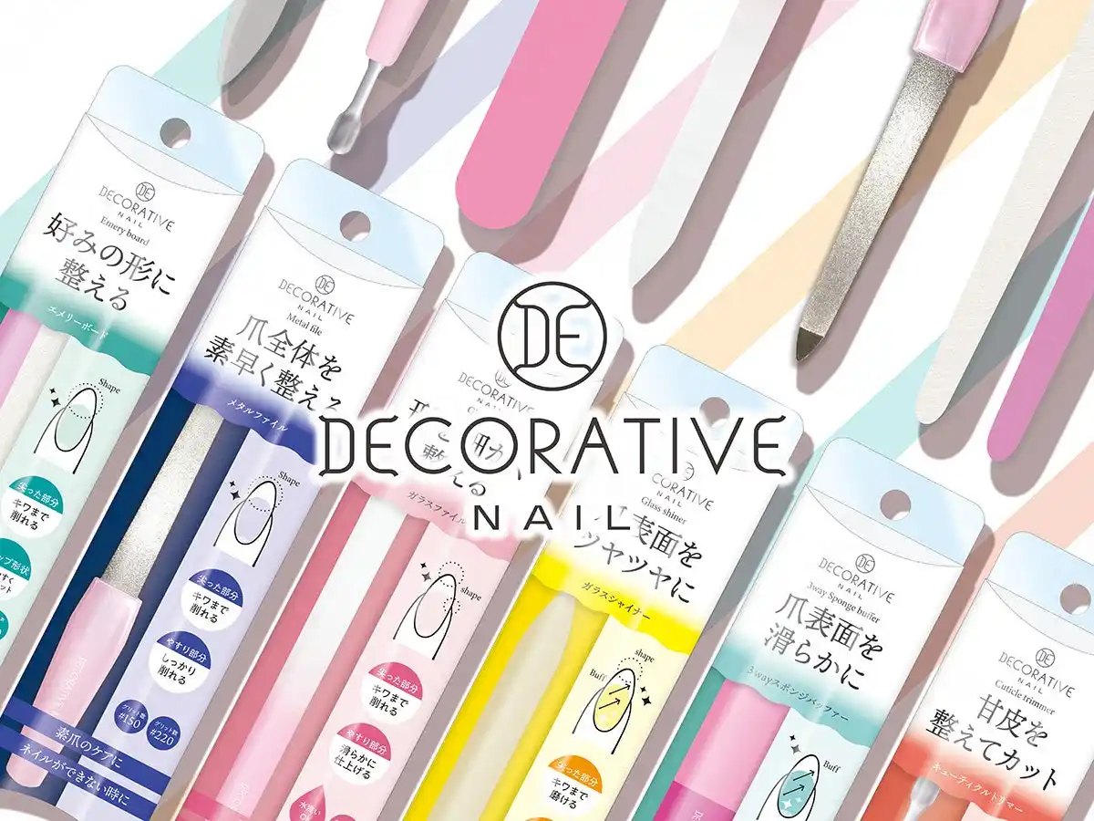 新商品は、粧美堂の人気ネイルケアグッズのパッケージを刷新し、「デコラティブネイルブランド」としてリニューアルしたネイルシリーズです。本シリーズは、「ネイルができない」をポジティブに変え、きちんとケアして〈爪を休める〉という発想から誕生しました。ラインナップは、エメリーボード、メタルファイル、ガラスファイル、ガラスシャイナー、スポンジバッファー、キューティクルトリマーの全6アイテム。ネイルケアの基本アイテムを揃えたラインナップで、初心者の方でも簡単にネイルケアができます。素爪もきれいに整えるなど、日常的な爪のメンテナンスをサポートします。 |