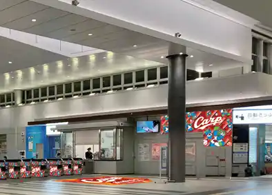 在来線を利用して応援にお越しのファンの皆様に応援機運を高めていただけるよう、中央改札口周辺に装飾を実施します。 |