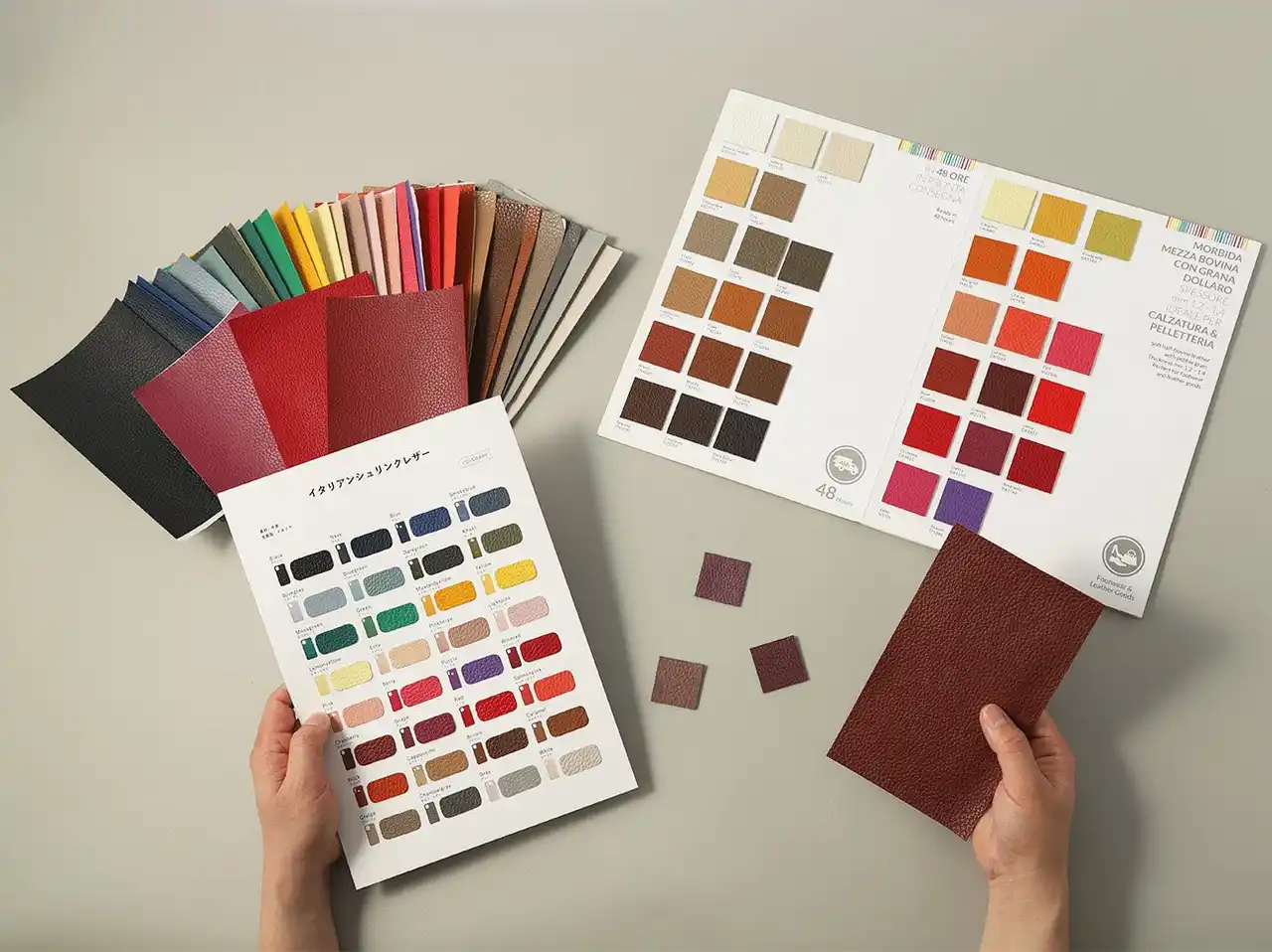 こちらのシリーズではマルーンカラーに加えて、COVERARYで人気のイタリアンシュリンクレザー32色のうち29色からもお選びいただくことが可能です。 |