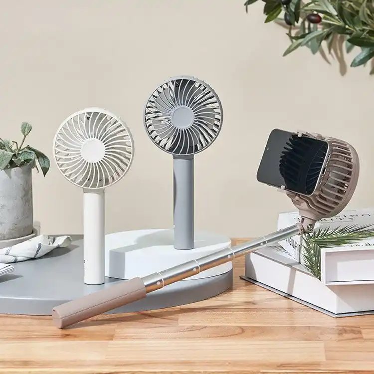 ハンディファンとして、また本体にスマホをセットすると自撮り棒として使用できる |