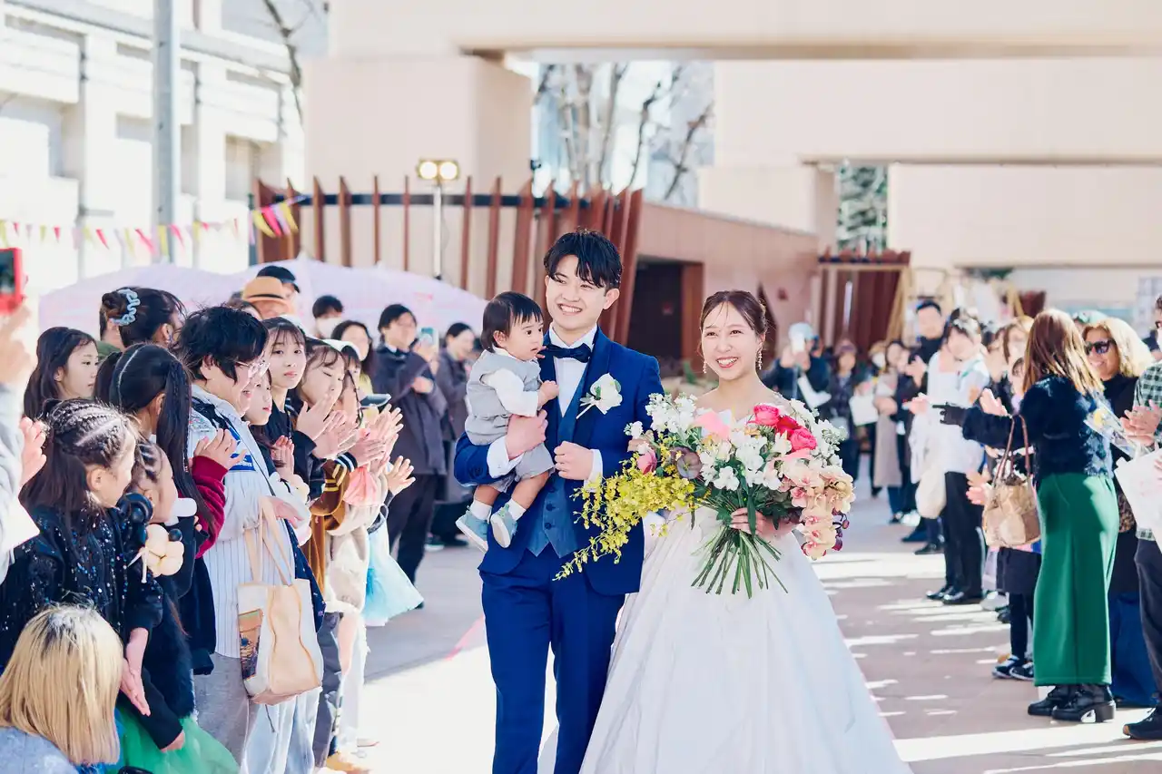 「wedding march 2026」は、当社の経営理念「結婚を、もっと幸せにしよう。」を社会実装するイベントです。 今年のテーマは、「祝福のシェア(共有体験)」。限られた方のみが体験する結婚式をまち全体へ開かれた「パブリックな場」で実施し、希薄化するコミュニティのつながり再構築や、地域課題の解決および魅力の再発見に貢献する目的で開催いたしました 。 |